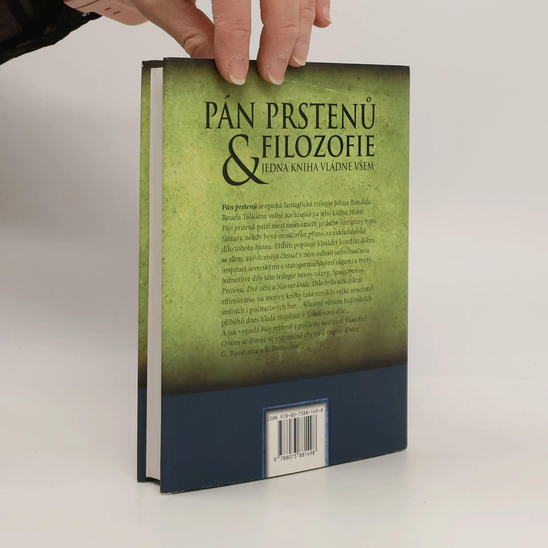 Pán prstenů je epická fantastická trilogie Johna Ronalda Reuela Tolkiena volně navazující na jeho knihu Hobit. Pán prstenů patří mezi nejznámější příběhy literatury typu fantasy, někdy bývá označován přímo za zakladatelské dílo tohoto žánru. Příběh popisuje klasický konflikt dobra se zlem, zasvěcenější čtenář v něm odhalí jednoznačnou inspiraci severskými a starogermánskými ságami a mýty. Jednotlivé díly této trilogie nesou názvy: Společenstvo prstenu, Dvě věže a Návrat krále. Dílo bylo několikrát zfilmováno, na motivy knihy také vzniklo velké množství stolních i počítačových her... Vlastně většina hrdinský příběhů dnes hledá inspiraci v Tolkienově díle... A jak vypadá Pán prstenů z pohledu současné filozofie? O tom se dovíte ve výjimečně chytré a vtipné knize editorů G. Basshama a E. Bronsona.
