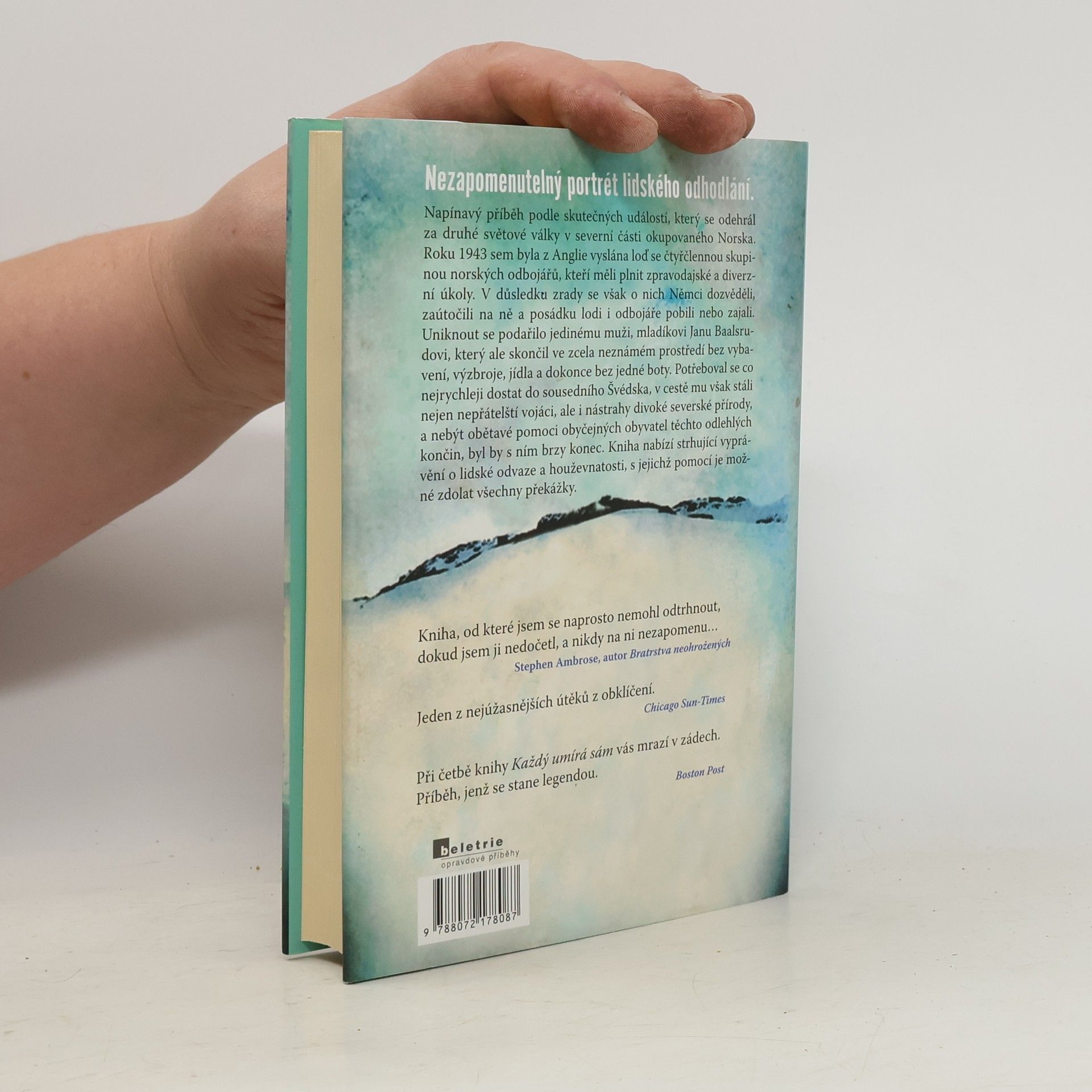 Jedna ze zásadních knih o umění špionáže a přežití. Strhující vyprávění o lidské odvaze a houževnatosti, s jejichž pomocí je možné zdolat všechny překážky. Napínavý příběh podle skutečných událostí, který se odehrál za druhé světové války v severní části okupovaného Norska. Roku 1943 sem byla z Anglie vyslána loď se čtyřčlennou skupinou norských odbojářů, kteří měli plnit zpravodajské a diverzní úkoly. V důsledku zrady se však o nich Němci dozvěděli, zaútočili na ně a posádku lodi i odbojáře pobili nebo zajali. Uniknout se podařilo jedinému muži, mladíkovi Janu Baalsrudovi, který ale skončil ve zcela neznámém prostředí bez vybavení, výzbroje, jídla, a dokonce bez jedné boty. Potřeboval se co nejrychleji dostat do sousedního Švédska, v cestě mu však stáli nejen nepřátelští vojáci, ale i nástrahy divoké severské přírody, a kdyby nebylo obětavé pomoci obyčejných obyvatel těchto odlehlých končin, byl by s ním brzy konec. Kniha původně vyšla v roce 1955, od té doby se dočkala mnoha vydání a nedávno nového v prestižním nakladatelství Canongate Press. O aktuálnosti titulu svědčí nová předmluva od Andyho McNaba, spisovatele a především bývalého vojáka, který bojoval v přední linii ve válce v Zálivu. V češtině kniha vychází poprvé.