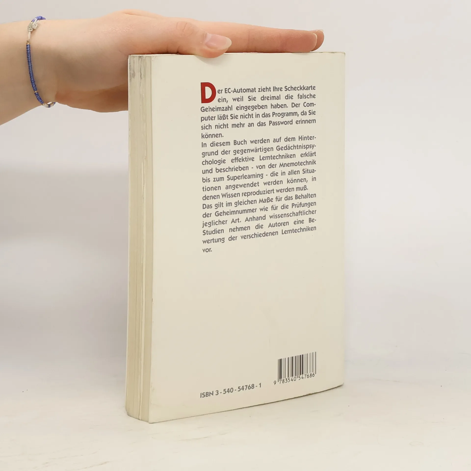 Die Autoren erklären, wie das Gedächtnis funktioniert, wie man sich Wissensstoff leichter aneignen und wie man das Gelernte besser behalten kann. Sie beschreiben effektive Lerntechniken für alle Situationen, in denen Wissen reproduziert werden muß - von der Geheimnummer am Geldautomaten bis zu Prüfungen aller Art.