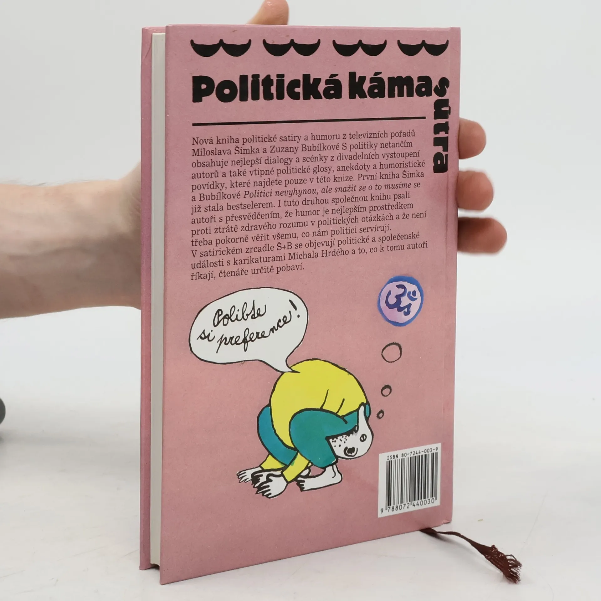Politická kámasútra, aneb, Polibte si preference Politická kámasútra obsahuje jak dialogy a scénky z televizního pořadu Zuzany Bubílkové a Miloslava Šimka S politiky netančím, tak jejich další satirické glosy, anekdoty a humoristické povídky. Autoři ji napsali s přesvědčením, že humor je nejlepším prostředkem proti ztrátě zdravého rozumu. Zdá se, že je tento způsob humoru plně uspokojuje. Do jaké míry v něm naleznou zalíbení také čtenáři, nechme na nich