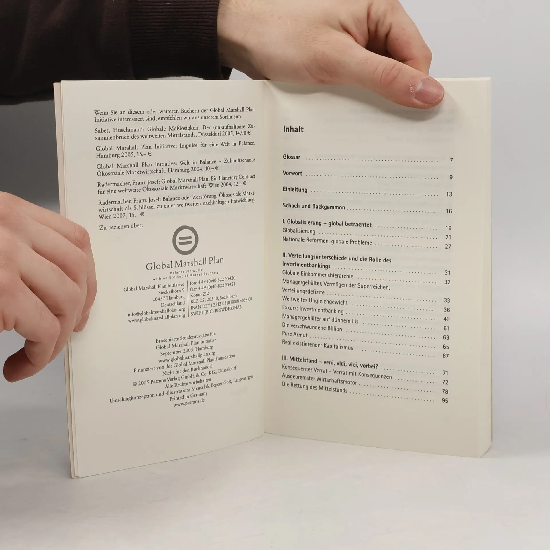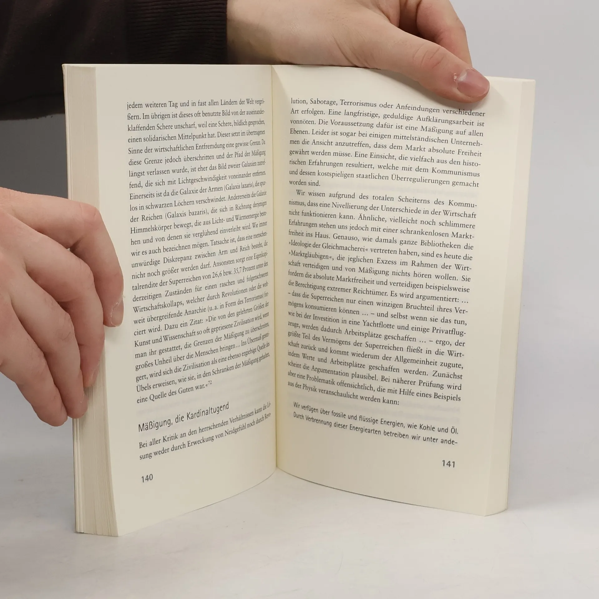 Eine neue weltweite Wirtschaftsethik wird von Huschmand Sabet skizziert, der eine nachhaltige globale Ökonomie auf Basis einer Weltdemokratie und Weltbürgerrechten entwirft. Uwe Möller, Generalsekretär des Club of Rome, beschreibt das Buch als aufrüttelndes Plädoyer für eine balancierte Weltwirtschaftsordnung, die allen Beteiligten die Möglichkeit gibt, eine nachhaltige Entwicklung mit sozialem Ausgleich und politischer Stabilität zu gestalten. Eine zentrale Forderung ist die Regulierung der zunehmend volatilen Finanzmärkte. Karlheinz Böhm betont, dass das Buch Pflichtlektüre in Schulen weltweit sein sollte, insbesondere in wohlhabenden Ländern. Sabet argumentiert, dass ohne Verzicht der Superreichen auf Einkommenszuwächse der Mittelstand, der größte wirtschaftliche Leistungsträger, zusammenbrechen könnte, was nachhaltige Armutsbekämpfung zur Illusion werden lässt. Er fordert eine führende Rolle der Weltreligionen und einen Globalen Marshall Plan für eine ökosoziale Marktwirtschaft. Das Buch kritisiert die missratene Globalisierung, die den Wertezuwachs fast ausschließlich den Superreichen zuschreibt, was die Demokratie gefährdet. Sabet zeigt auf, wie die Verteidigung des Mittelstands untrennbar mit der Verbesserung der Situation der Armen verbunden ist und skizziert konkrete Maßnahmen, einschließlich der Grameen Bank und anderer Entwicklungsinitiativen.