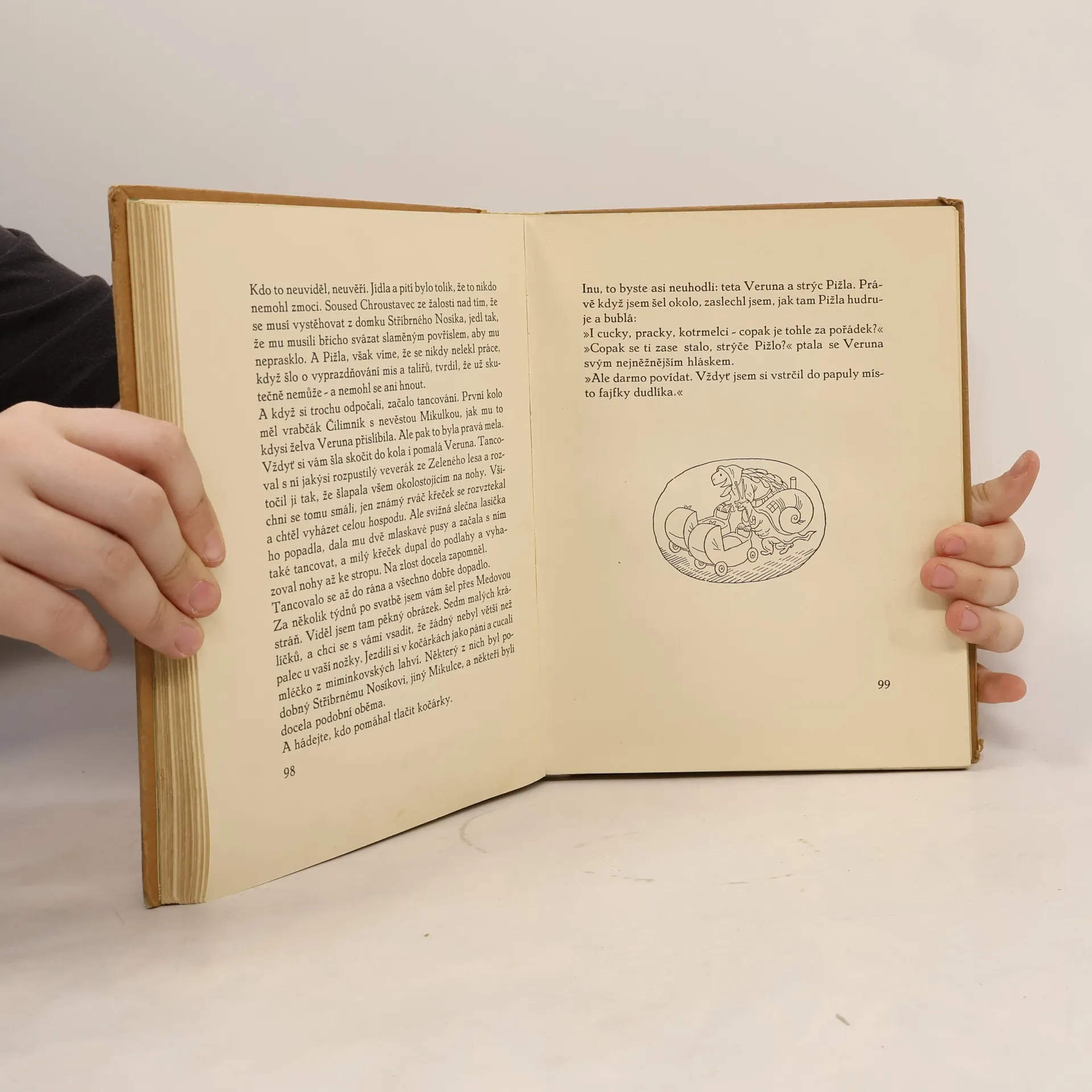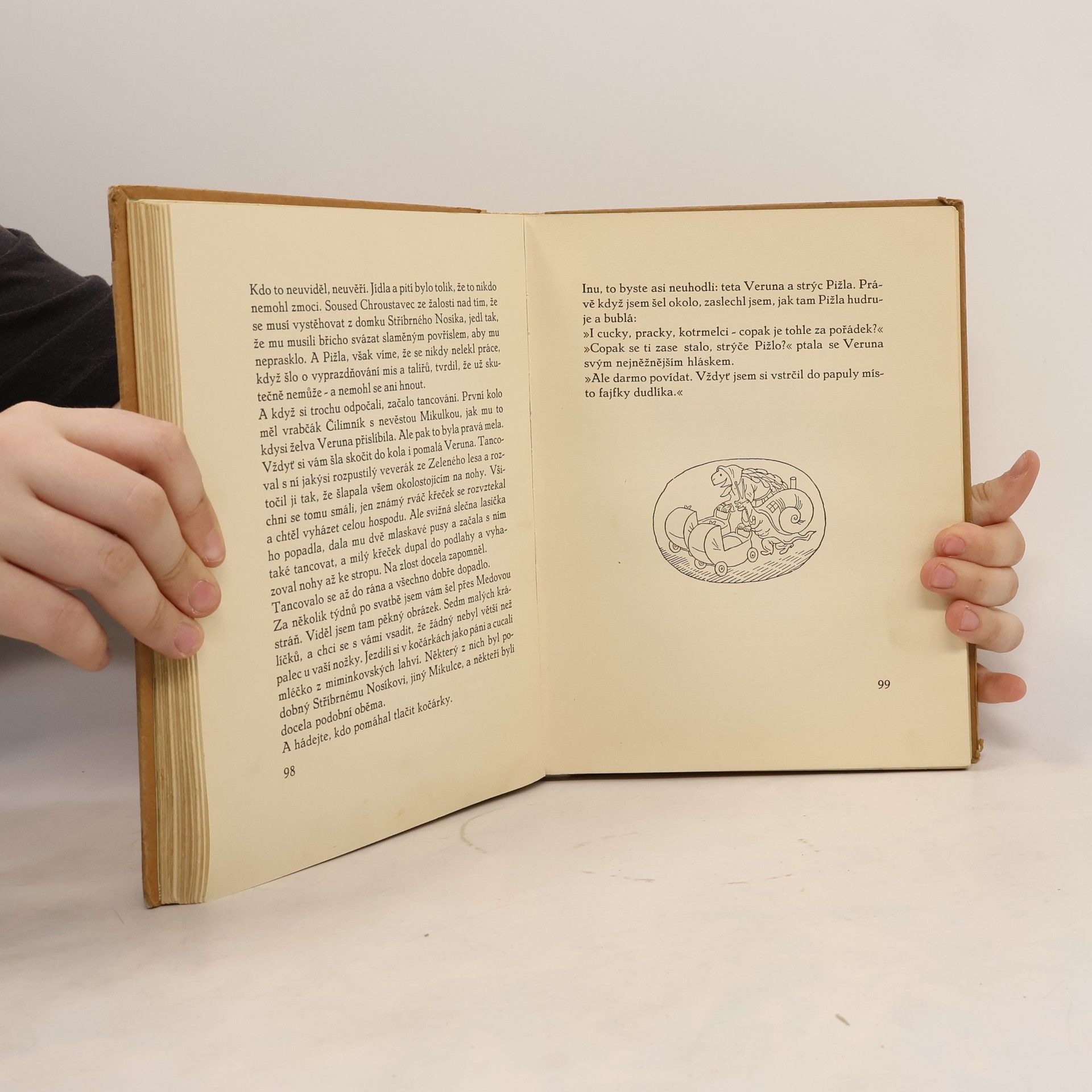 Obsah: Veselé dobrodružství: Tajemný dvor, Stříbrný Nosík, Hlemýžď na rozhledně, Krkolomná jízda, Stavitelé domků, Vzácná návštěva, V chaloupce straší, Mikulka na pasece, Velké přípravy, Pátrání, Detektiv Karkulák, Podařená dvojice, Rámus hryže trávu, Veruna má slovo, Dopis s malými chybami, Nevídaný hon, Noční stíny, Vyjednávání za plotem, Dvě chůvy. Daleká výprava: Velké rozhodnutí, Nohy čápa Babiráda, Zábava na topolu, Pižla se učí plavat, Zemětřesení, Podzemní výprava, Čutalovi mokne hlava, Dvounohé nebezpečí, Není plot jako plot, Domeček pro štěstí, Strach na objednávku, Lanová dráha, Krkolomný kolotoč, Pravda může být různá, Největší pán, Služba u ježibaby, Velká voda, Když se dere peří. Čtvrté vydání. Cena knihy v čase vydání: 26.- Kčs.