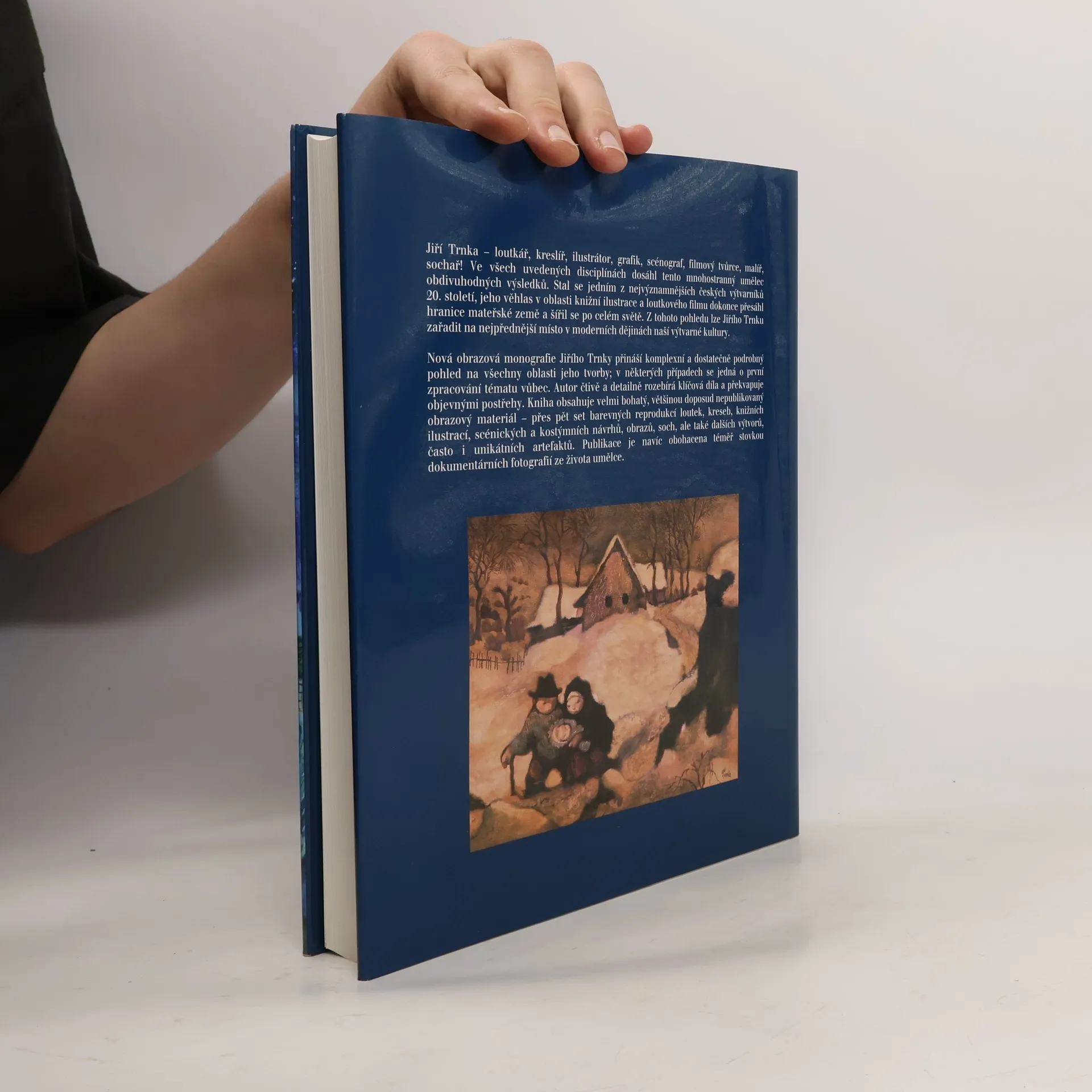 Nová obrazová monografie Jiřího Trnky přináší komplexní a dostatečně podrobný pohled na všechny oblasti jeho tvorby; v některých případech se jedná o první zpracování tématu vůbec. Autor čtivě a detailně rozebírá klíčová díla a překvapuje objevnými postřehy. Kniha obsahuje velmi bohatý, většinou doposud nepublikovaný obrazový materiál - přes pět set barevných reprodukcí loutek, kreseb, knižních ilustrací, scénických a kostýmních návrhů, obrazů, soch, ale také dalších výtvorů často unikátních artefaktů. Publikace je navíc obohacena téměř stovkou dokumentárních fotografií ze života tohoto významného umělce.