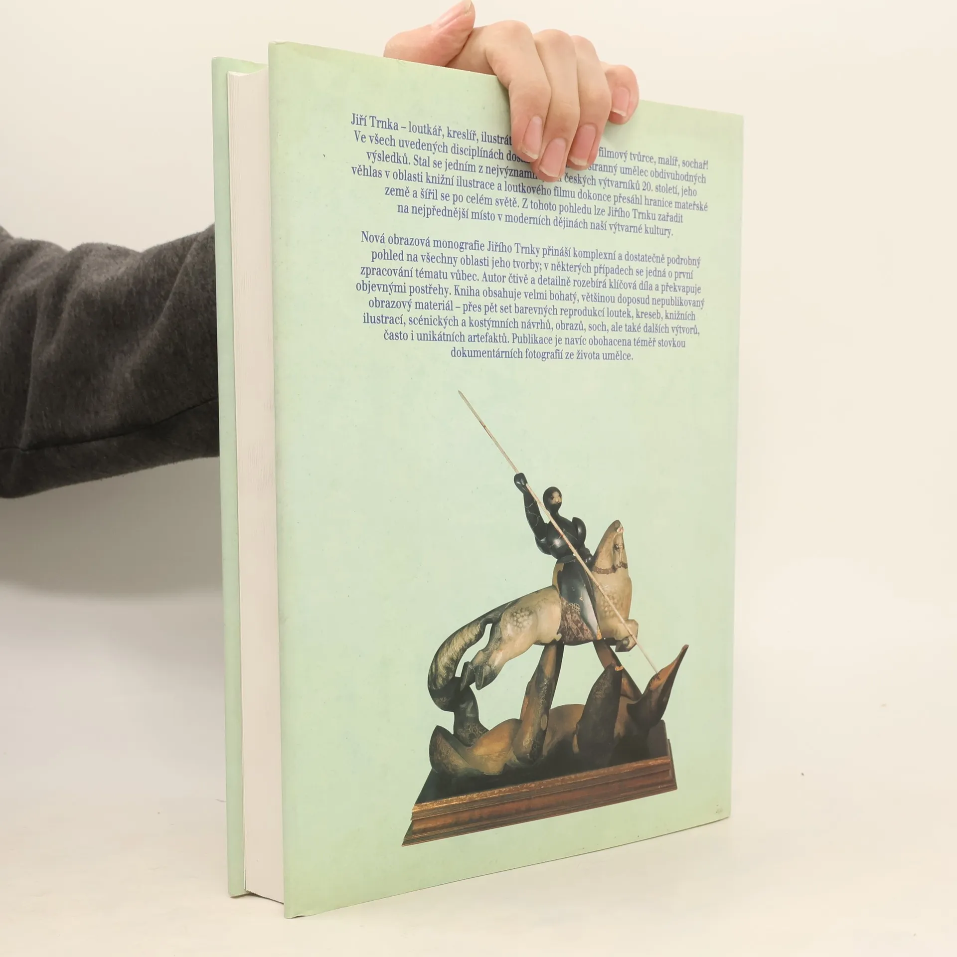 Nová obrazová monografie Jiřího Trnky přináší komplexní a dostatečně podrobný pohled na všechny oblasti jeho tvorby; v některých případech se jedná o první zpracování tématu vůbec. Autor čtivě a detailně rozebírá klíčová díla a překvapuje objevnými postřehy. Kniha obsahuje velmi bohatý, většinou doposud nepublikovaný obrazový materiál - přes pět set barevných reprodukcí loutek, kreseb, knižních ilustrací, scénických a kostýmních návrhů, obrazů, soch, ale také dalších výtvorů často unikátních artefaktů. Publikace je navíc obohacena téměř stovkou dokumentárních fotografií ze života tohoto významného umělce.