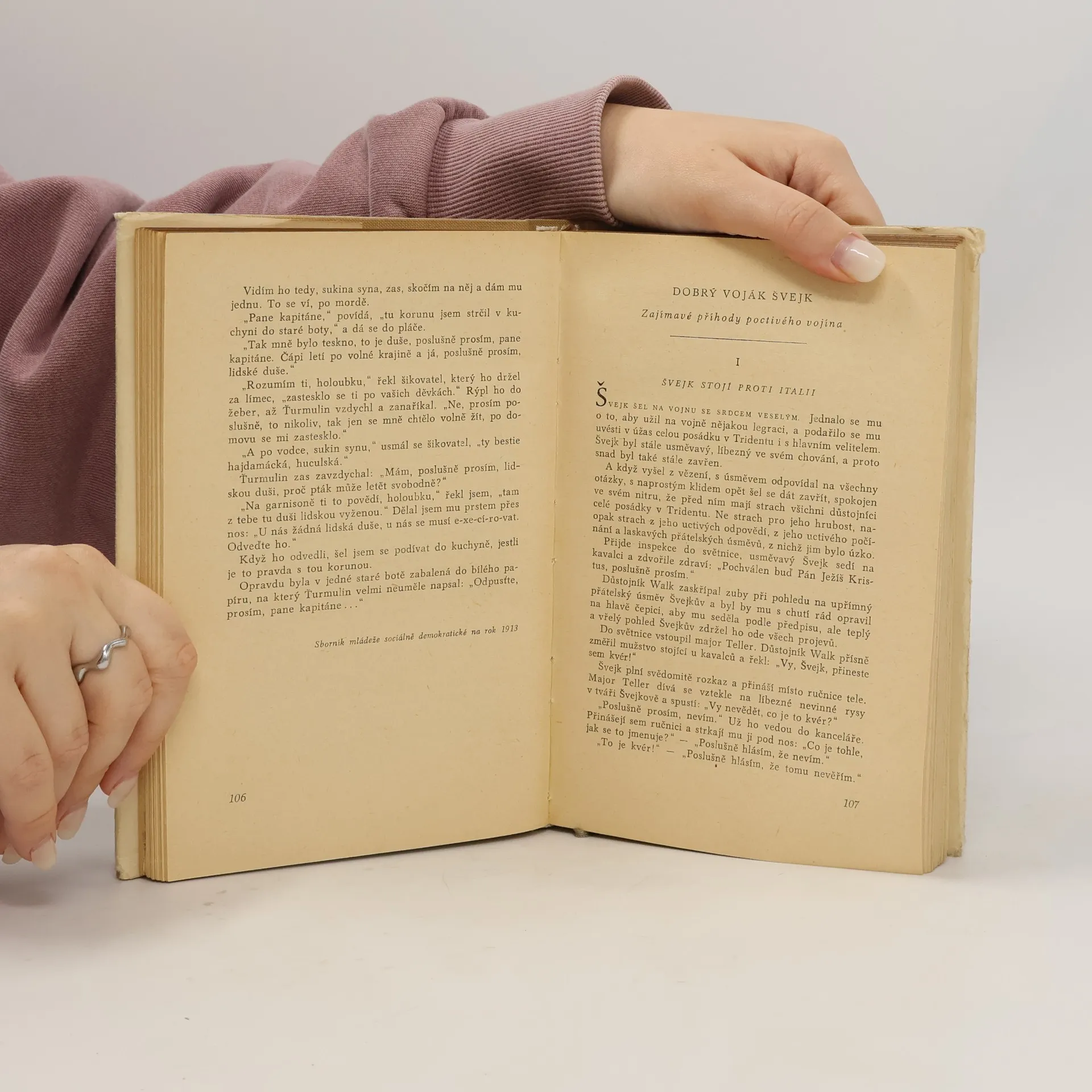 První část svazku s vojenskými povídkami zakončují historky o Švejkovi, napsané před první světovou válkou. V usměvavém, líbezném Švejkovi, „který jde na vojnu, aby užil nějakou tu legraci, který s nejnevinnějším úsměvem na rtech zapaluje skladiště se střelnou bavlnou, poznáme příštího jeho druha ze světové války. Druhou a třetí část svazku tvoří satiry na císaře, krále a „potentáty z milosti boží vůbec, satiry a povídky, ve kterých se autor vysmívá tomu „prazvláštnímu druhu individuí rakouského policejního aparátu, s nímž přicházel za svého života tak často do konfliktu. Milovníkům Haškova díla se dostává do rukou knížka málo známých, z velké části dosud nepublikovaných povídek klasika české satiry.