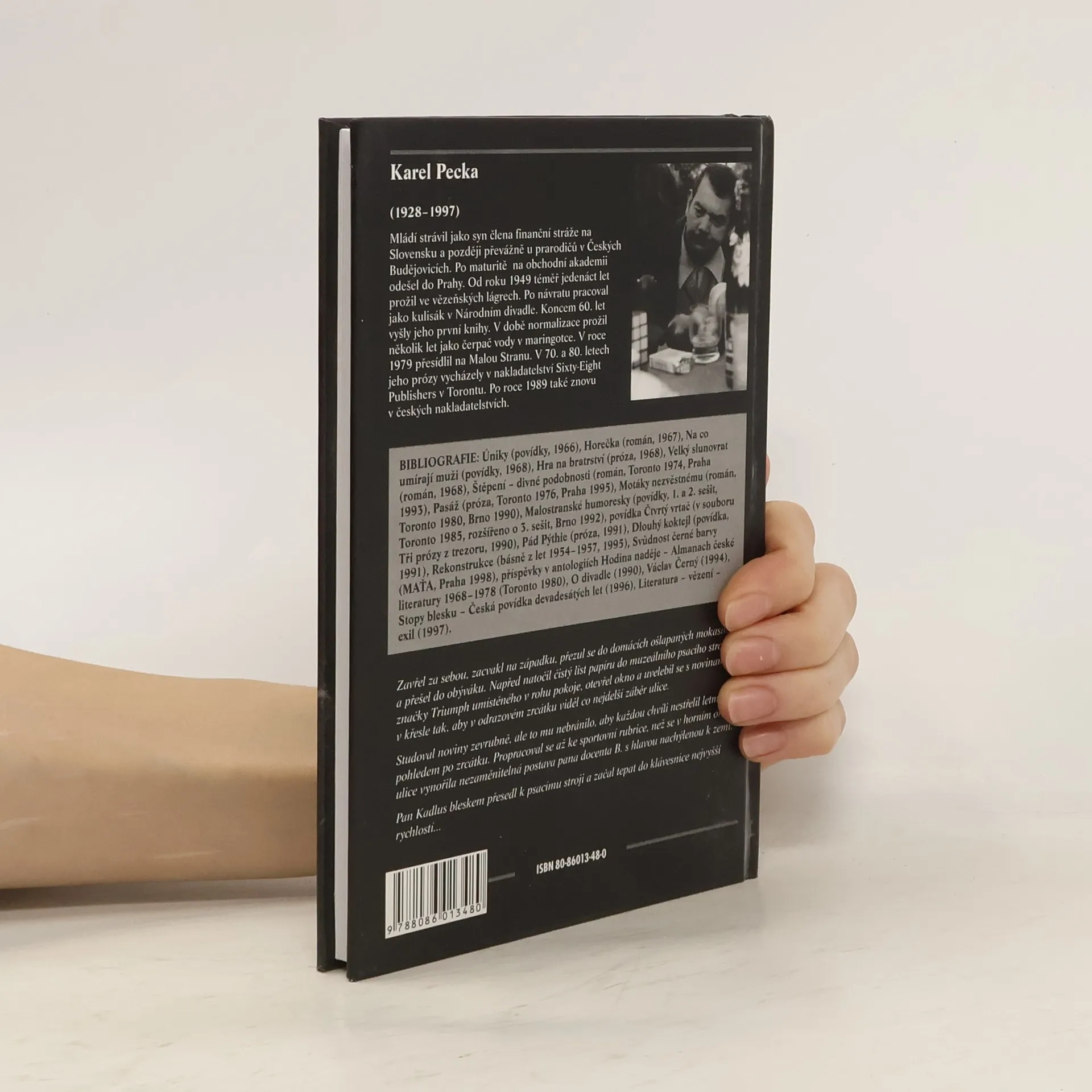 Karel Pecka se stal jednou z výrazných postav české literatury. Svoji literární dráhu započal v šedesátých letech, kdy mu vyšly první knihy. Po letech nedobrovolné odmlky vycházejí v devadesátých letech znovu. První vydání dosud nikdy nepublikovaných povídek z pozůstalosti autora navazuje na úspěšné Malostranské humoresky a autorovým charakteristickým stylem reaguje na polistopadový vývoj v Čechách, viděný nejen očima Peckových malostranských postaviček. S žánrovými fotografiemi Stanislava Tůmy.