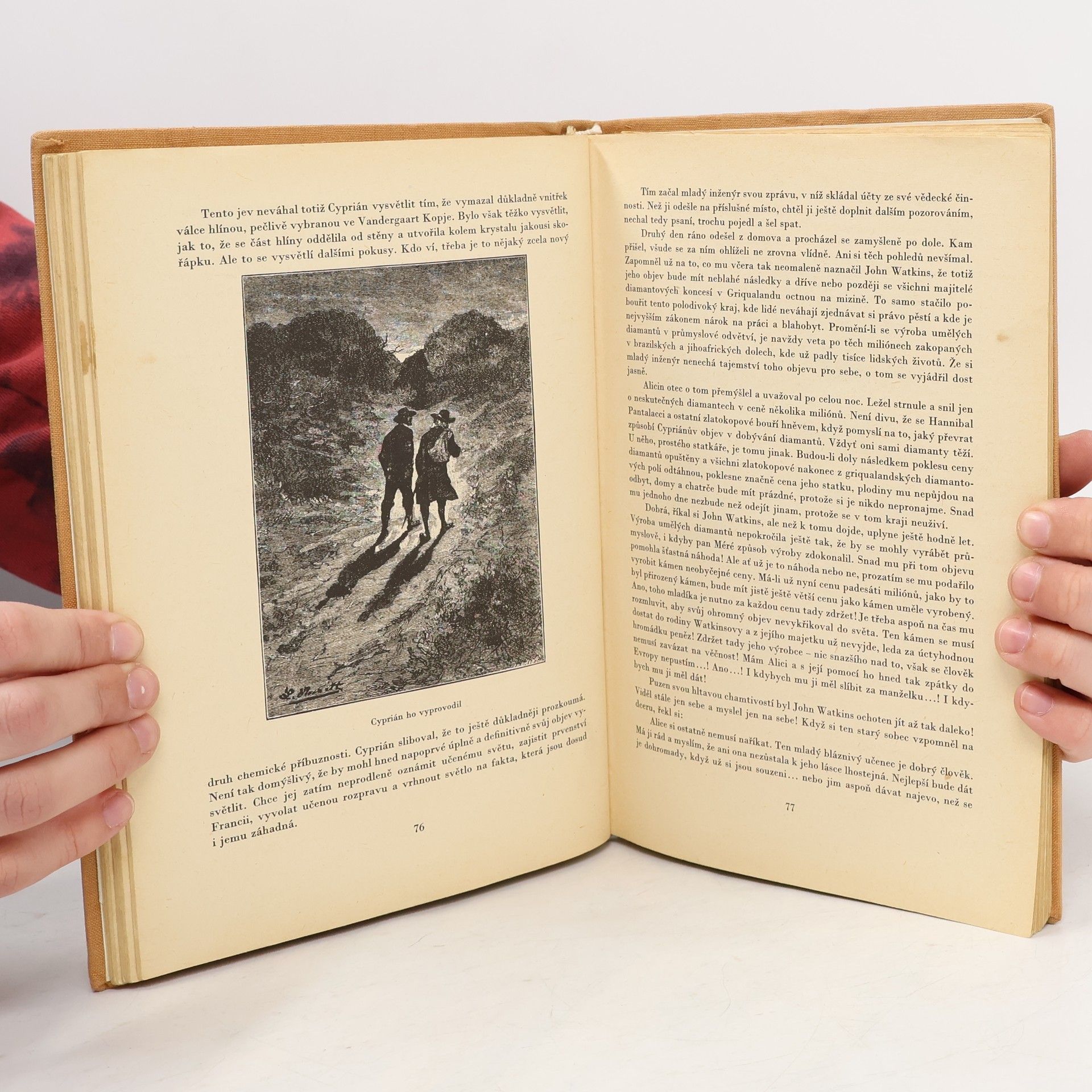 Dobrodružný román z jihoafrických diamantových polí líčí historii uměle vyrobeného diamantu, zvaného Hvězda jihu, diamantu, který se při slavnostní hostině záhadně ztratí a jejž neohroženě hledá jeho tvůrce, mladý francouzský inženýr. Kapitoly: 1. Ti Francouzi jsou úžasní chlapíci, 2. Diamantové pole, 3. Trochu vědy, které učí dobrý přítel, 4. Vandergaart Kopje, 5. První práce, 6. Život v táboře, 7. Zával, 8. Velký pokus, 9. Překvapení, 10. John Watkins uvažuje, 11. Hvězda jihu, 12. Přípravy k odjezdu, 13. Napříč Transvaalem, 14. Na sever od Limpopa, 15. Úklady, 16. Zrada, 17. Překážkový běh napříč Afrikou, 18. Pštros, který mluví, 19. Zázračná jeskyně, 20. Návrat, 21. Benátská spravedlnost, 22. Prapodivný dúl, 23. Komturova socha, 24. Padající hvězda. Druhé vydání v Albatrosu. Cena knihy v čase vydání: 24 Kčs.