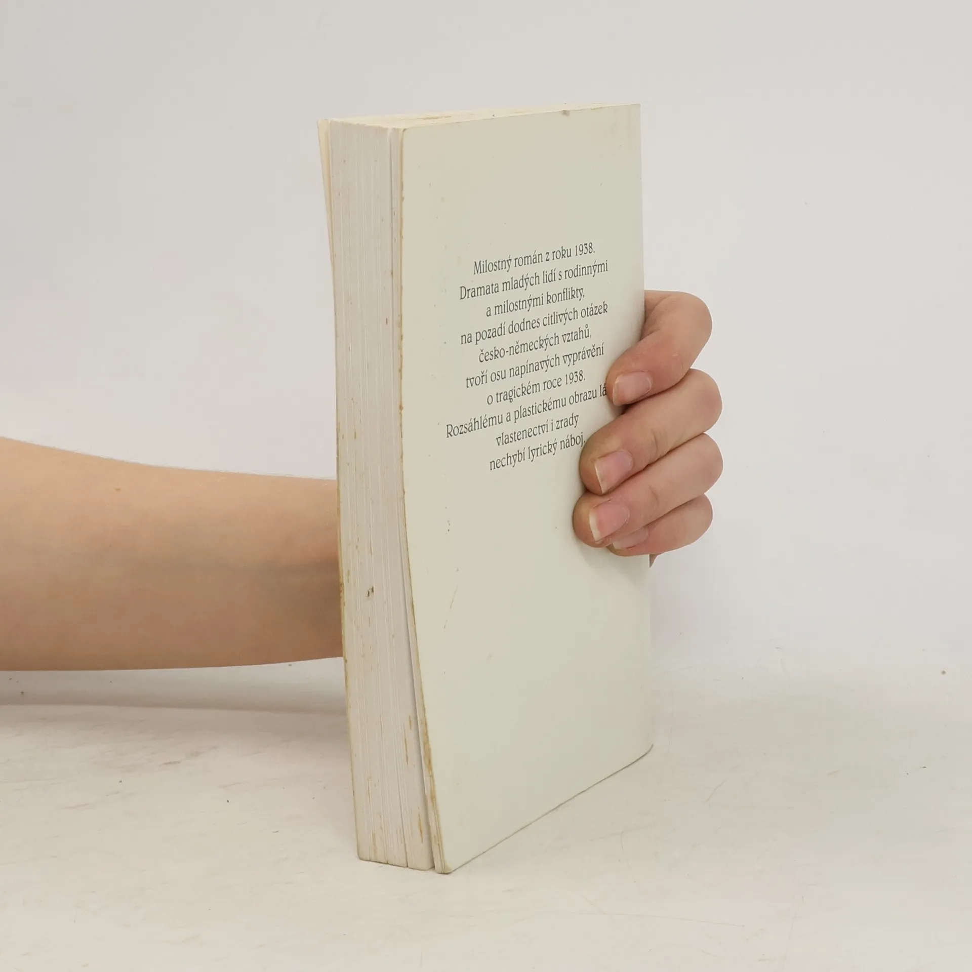 Dramata mladých lidí s rodinnými a milostnými konflikty, na pozadí dodnes citlivých otázek česko-německých vztahů, tvoří osu napínavého vyprávění z konce třicátých let minulého století. Rozsáhlému obrazu lásky, vlastenectví i zrady nechybí lyrický náboj.
