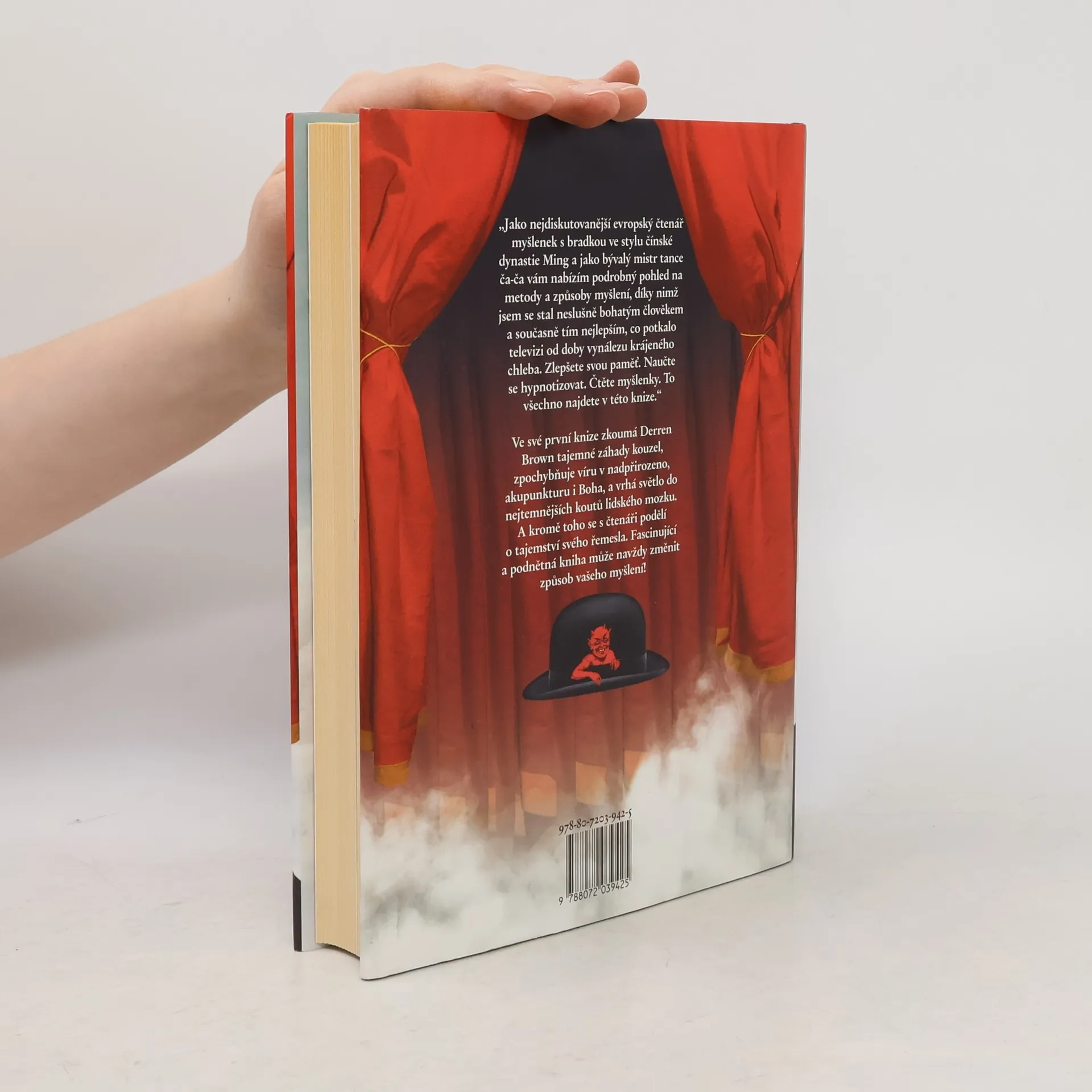 Derren Brown (1971) je britský psycho-iluzionista, který nevěří na paranormální jevy. Studoval práva a germanistiku v Bristolu a k hypnóze ho inspirovalo představení hypnotizéra Taylora. Začal se sám hypnózou zabývat a vystupoval po barech. Na Vánoce roku 2000 běžel v britské televizi pilotní díl jeho pořadu Magie a manipulace mysli, který se velmi rychle stal hitem. Brown od té doby vydal tři knihy, dobýval USA na turné za účasti odborníků, kteří měli posoudit, zda je podvodník nebo ne, hrál v televizi naživo ruskou ruletu a vystupoval po celé Británii. V roce 2006 získal cenu Laurence Oliviera za nejlepší zábavní show. Dělal všechno, aby se mediálně zviditelnil, a vydělal dost peněz, aby na jejich vydělávání už nemusel myslet. V knize naznačuje některé své techniky, popisuje metody manipulace mysli, napovídá, jak se naučit „číst“ chování lidí, důkladně probírá umění hypnózy, vysvětluje alternativní medicínu jako placebo efekt a věnuje se také zábavnímu průmyslu kolem magie.