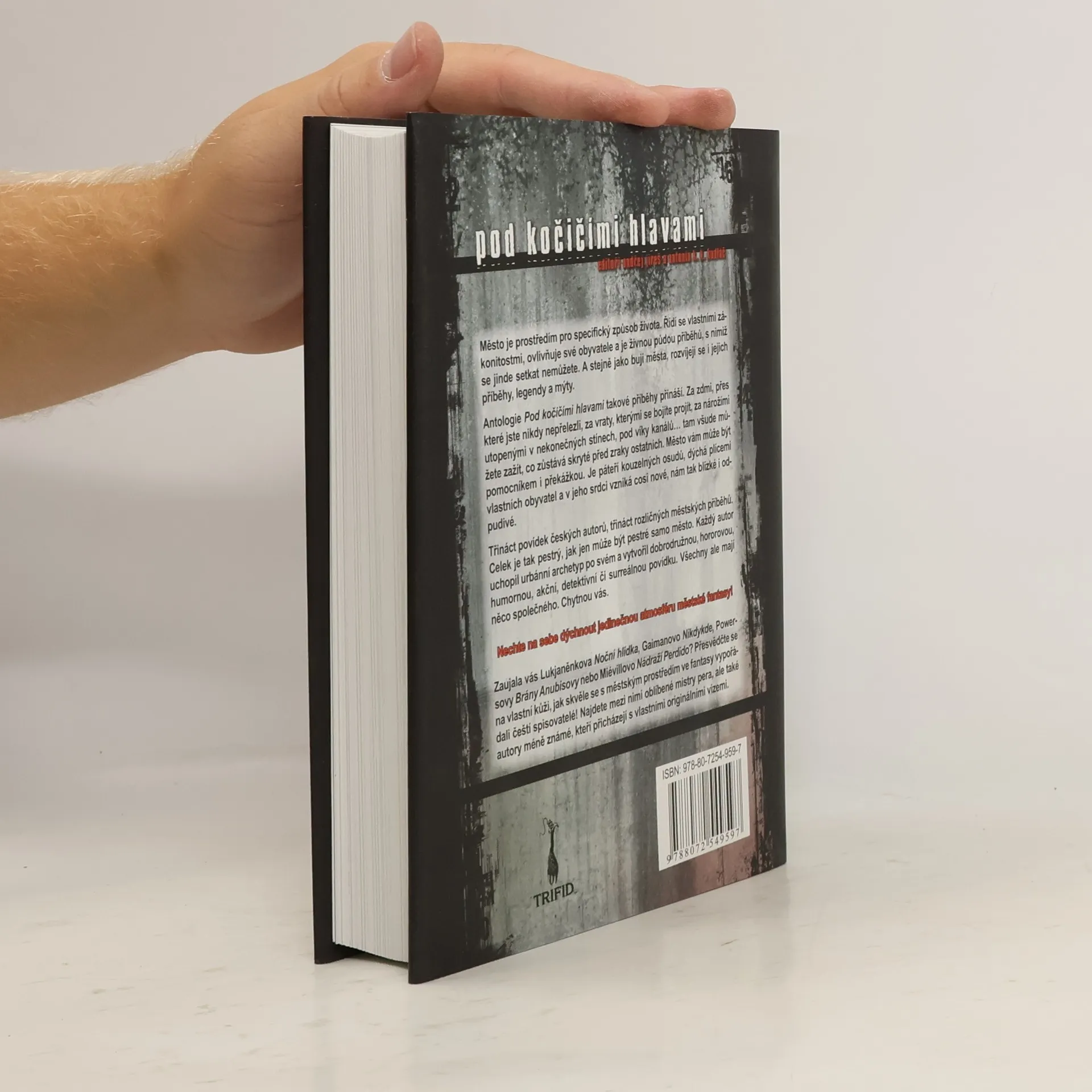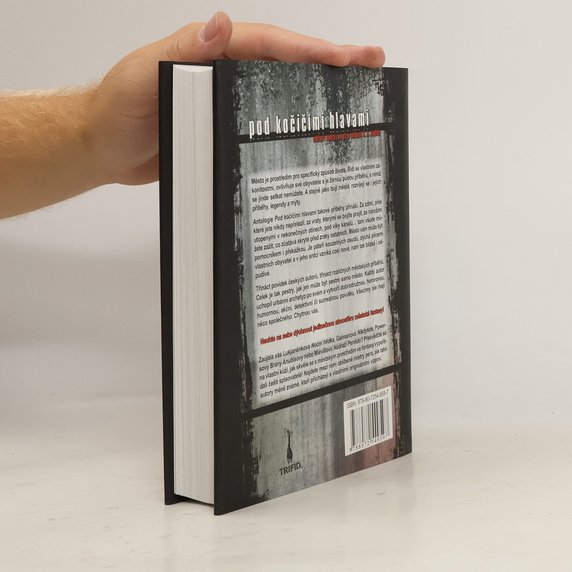 Město je prostředím pro specifický způsob života. Řídi se vlastními zákonitostmi, ovlivňuje své obyvatele a je živnou půdou příběhů, s nimiž se jinde setkat nemůžete. A stejně jako bují města, rozvíjejí se i jejich příběhy, legendy a mýty. Antologie Pod kočičími hlavami takové příběhy přináší. Za zdmi, přes které jste nikdy nepřelezli, za vraty, kterými se bojíte projít, za nárožími utopenými v nekonečných stínech, pod víky kanálů… tam všude můžete zažít, co zůstává skrytě před zraky ostatních. Město vám může být pomocníkem i překážkou. Je páteří kouzelných osudů, dýchá plícemi vlastních obyvatel a v jeho srdci vzniká cosi nové, nám tak blízké i odpudivé. Třináct povídek českých autorů, třináct rozličných městských příběhů. Celek je tak pestrý, jak jen může být pestré samo město. Každý autor uchopil urbánní archetyp po svém a vytvořil dobrodružnou, hororovou, humornou, akční, detektivní či surreálnou povídku. Všechny ale mají něco společného. Chytnou vás. Sestavil Ondřej Jireš a Antonín K. K. Kudláč.