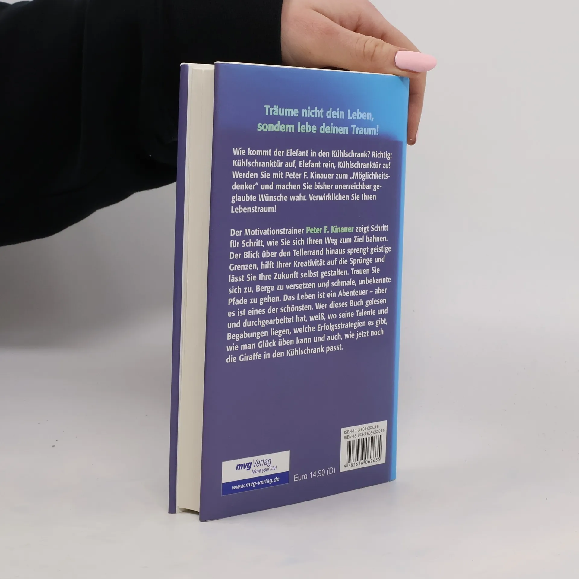 Träume nicht dein Leben, sondern lebe deinen Traum! Wie kommt der Elefant in den Kühlschrank? Richtig: Kühlschranktür auf, Elefant rein, Kühlschranktür zu! Werden Sie mit Peter F. Kinauer zum „Möglichkeitsdenker“ und machen sie bisher unerreichbar geglaubte Wünsche wahr. Verwirklichen Sie Ihren Lebenstraum! Der Motivationstrainer Peter F. Kinauer zeigt Ihnen in 39 anregenden Kapiteln Schritt für Schritt, wie Sie sich Ihren Weg zum Ziel bahnen, und gibt wichtige Impulse zur Entwicklung Ihrer eigenen Authentizität und Originalität. Der Blick über den Tellerrand hinaus sprengt geistige Grenzen, hilft Ihrer Kreativität auf die Sprünge und lässt Sie ihre Zukunft selbst gestalten. Trauen Sie sich zu, Berge zu versetzen und schmale, unbekannte Pfade zu gehen! Das Leben ist ein Abenteuer - aber es ist eines der schönsten. Wer dieses Buch gelesen und durchgearbeitet hat, weiß, wo seine Talente und Begabungen liegen, welche Erfolgsstrategien es gibt, wie man Glück üben kann und auch wie jetzt noch die Giraffe in den Kühlschrank passt.