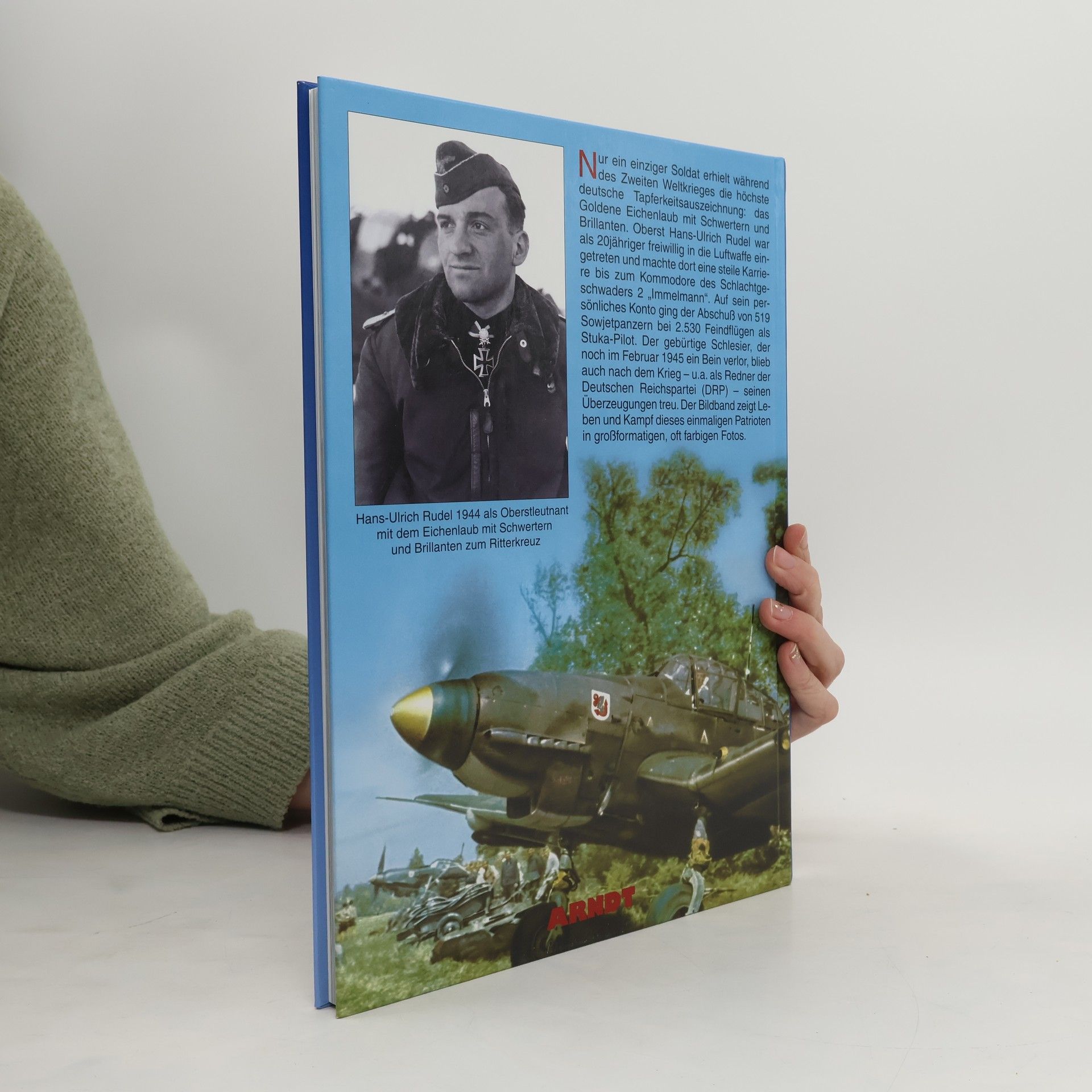 Nur ein einziger Soldat erhielt während des 2. Weltkrieges die höchste deutsche Tapferkeitsauszeichnung: das Goldene Eichenlaub mit Schwertern und Brillanten. Oberst Rudel war als 20jähriger freiwillig in die Luftwaffe eingetreten und machte dort eine steile Karriere bis zum Kommodore des Jagdgeschwaders „Immelmann“. Auf sein persönliches Konto ging der Abschuß von 519 Sowjetpanzern bei 2.530 Feindflügen als Stuka-Pilot. Der gebürtige Schlesier, der noch im februar 1945 ein Bein verlor, blieb auch nach dem krieg seinen Überzeugungen treu. Der Bildband zeigt Leben und Kampf dieses einmaligen Patrioten in großformatigen, oft farbigen Fotos.
