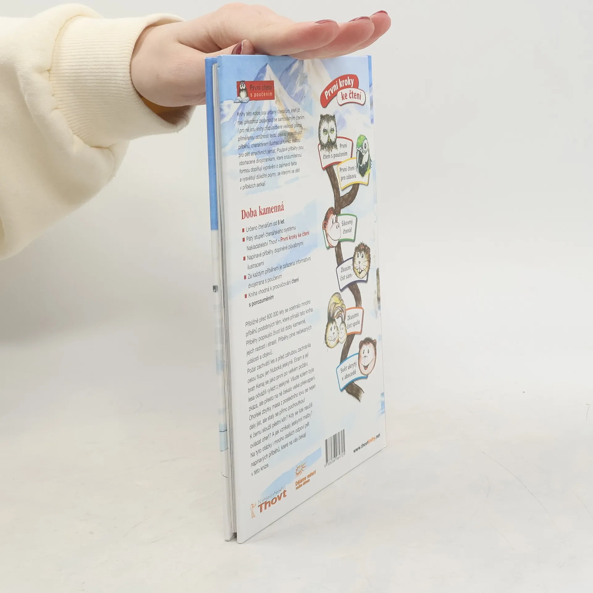 Pět příběhů plných napětí a dobrodružství zanese čtenáře do doby přibližně před 600 000 lety. K čemu sloužil pěstní klín? Kdy se lidé naučili ovládat oheň? Jak vznikaly jeskynní malby? Na tyto otázky, ale i na mnohé další vám odpoví samotné příběhy, ale i dvojstránky plné zajímavostí a poučení. První čtení s poučením Jak již napovídá název, jedná se o edici určenou dětem ve věkové kategorii 8 až 10 let. Knihy jsou přizpůsobené začínajícím čtenářům v mnoha směrech: velikostí písma, délkou jednotlivých příběhu, volbou témat a v neposlední řadě charakterem ilustrací. Každé vyprávění uzavírá vzdělávací dvoustránka, na které se děti srozumitelnou a zároveň poutavou formou dozvědí význam důležitých historických pojmů a mnoho zajímavostí souvisejících s tématem příběhu.