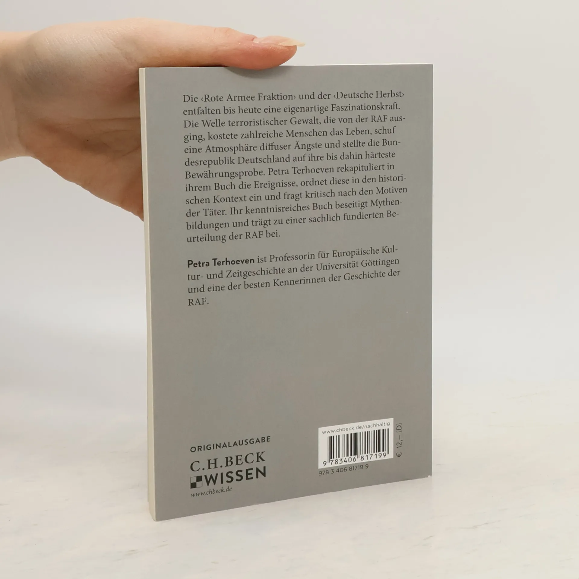 Die ‹Rote Armee Fraktion› und der ‹Deutsche Herbst› entfalten bis heute eine eigenartige Faszinationskraft. Die Welle terroristischer Gewalt, die von der RAF ausging, kostete zahlreiche Menschen das Leben, schuf eine Atmosphäre diffuser Ängste und stellte die Bundesrepublik Deutschland auf ihre bis dahin härteste Bewährungsprobe. Petra Terhoeven rekapituliert in ihrem Buch die Ereignisse, ordnet diese in den historischen Kontext ein und fragt kritisch nach den Motiven der Täter. Ihr kenntnisreiches Buch beseitigt Mythenbildungen und trägt zu einer sachlich fundierten Beurteilung der RAF bei.