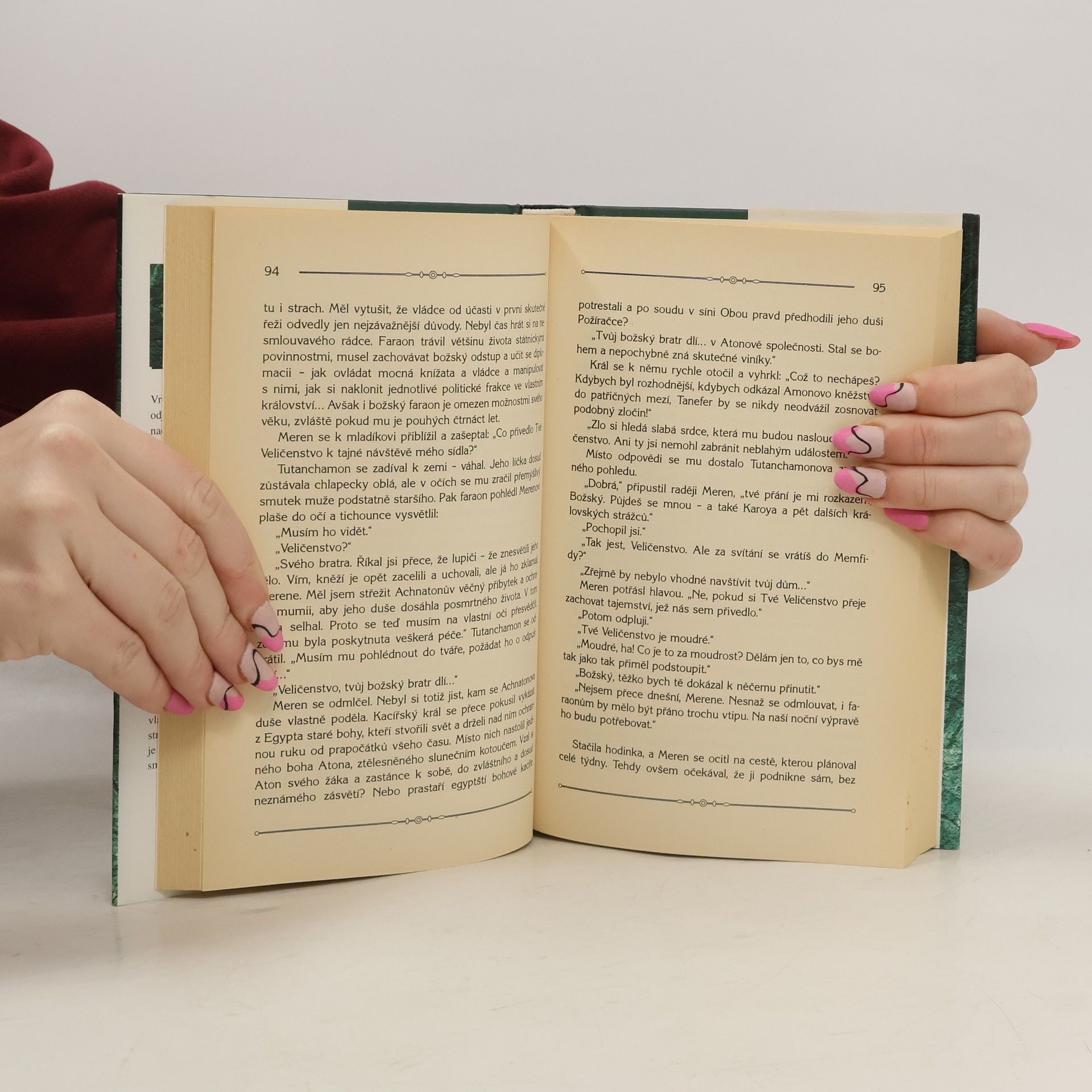 Pan Meren odjíždí na venkovské sídlo, aby se tam zotavil z nedávného zranění a načerpal nové síly ve společnosti svých dvou dcer. Zdánlivě nevinná návštěva je ovšem spojena s tajným posláním, kterým ho pověřil samotný Tutanchamon. Splnit faraonův rozkaz je ale pro Merena mnohem složitější, než se zpočátku zdálo. Musí totiž čelit závisti rodinných příslušníků, odrážet lichotky ctižádostivých známých, kteří by se rádi dostali ke královskému dvoru, usměrňovat své dospívající dcery a krotit mladickou touhu po dobrodružství, jíž oplývá mladý faraon. Při tom všem však nesmí ani na okamžik pustit ze zřetele tajemný náklad, složený v opuštěném chrámu nedaleko venkovského sídla. Slavnost na počest Merenova příjezdu končí tragicky – druhého dne je v jedné ze sýpek nalezeno tělo manželky jeho nešťastného bratrance. Anhai měla velmi ráda muže, vládla břitkým jazykem a potrpěla si na hmotné statky, které mnohdy nenabyla čestným způsobem. Někteří ji z duše nenáviděli, jiní si jí vážili proto, že kdysi sloužila u dvora královny Nefertiti… Meren se snaží odhalit pravdu a marně doufá, že nečekané úmrtí nesouvisí s jeho přísně tajnou misí. Bez ohledu na vlastní citovou újmu neúnavně stopuje strůjce zločinu, který má na svědomí více, než by se prostý smrtelník vůbec odvážil pomyslet…