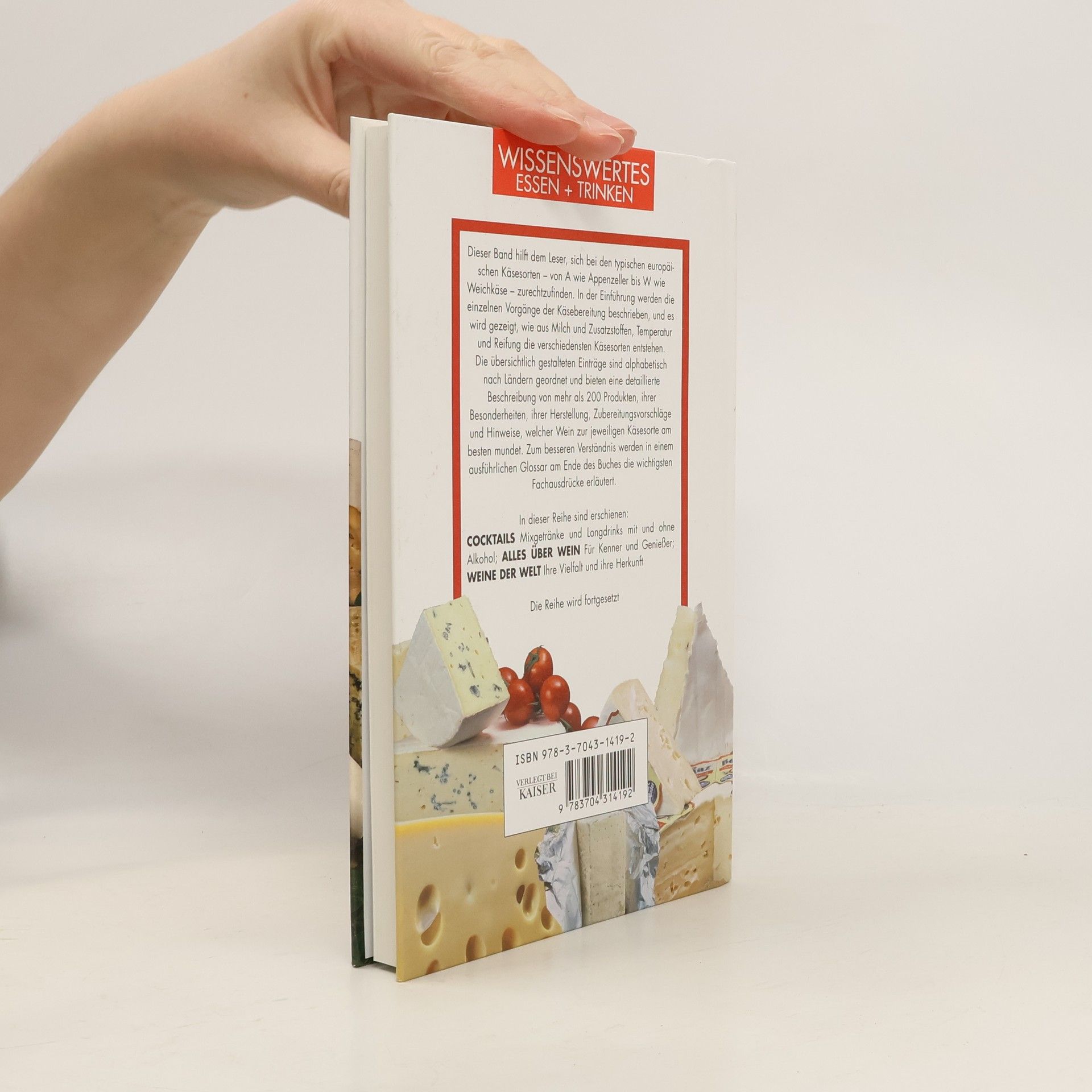 Dieser Band hilft dem Leser, sich bei den typischen europäischen Käsesorten – von A wie Appenzeller bis W wie Weichkäse – zurechtzufinden. In der Einführung werden die einzelnen Vorgänge der Käsebereitung beschrieben, und es wird gezeigt, wie aus Milch und Zusatzstoffen, Temperatur und Reifung die verschiedensten Käsesorten entstehen. Die übersichtlich gestalteten Einträge sind alphabetisch nach Ländern geordnet und bieten eine detaillierte Beschreibung von mehr als 200 Produkten, ihrer Besonderheiten, ihrer Herstellung, Zubereitungsvorschläge und Hinweise, welcher Wein zur jeweiligen Käsesorte am besten mundet. Zum besseren Verständnis werden in einem ausführlichen Glossar am Ende des Buches die wichtigsten Fachausdrücke erläutert.