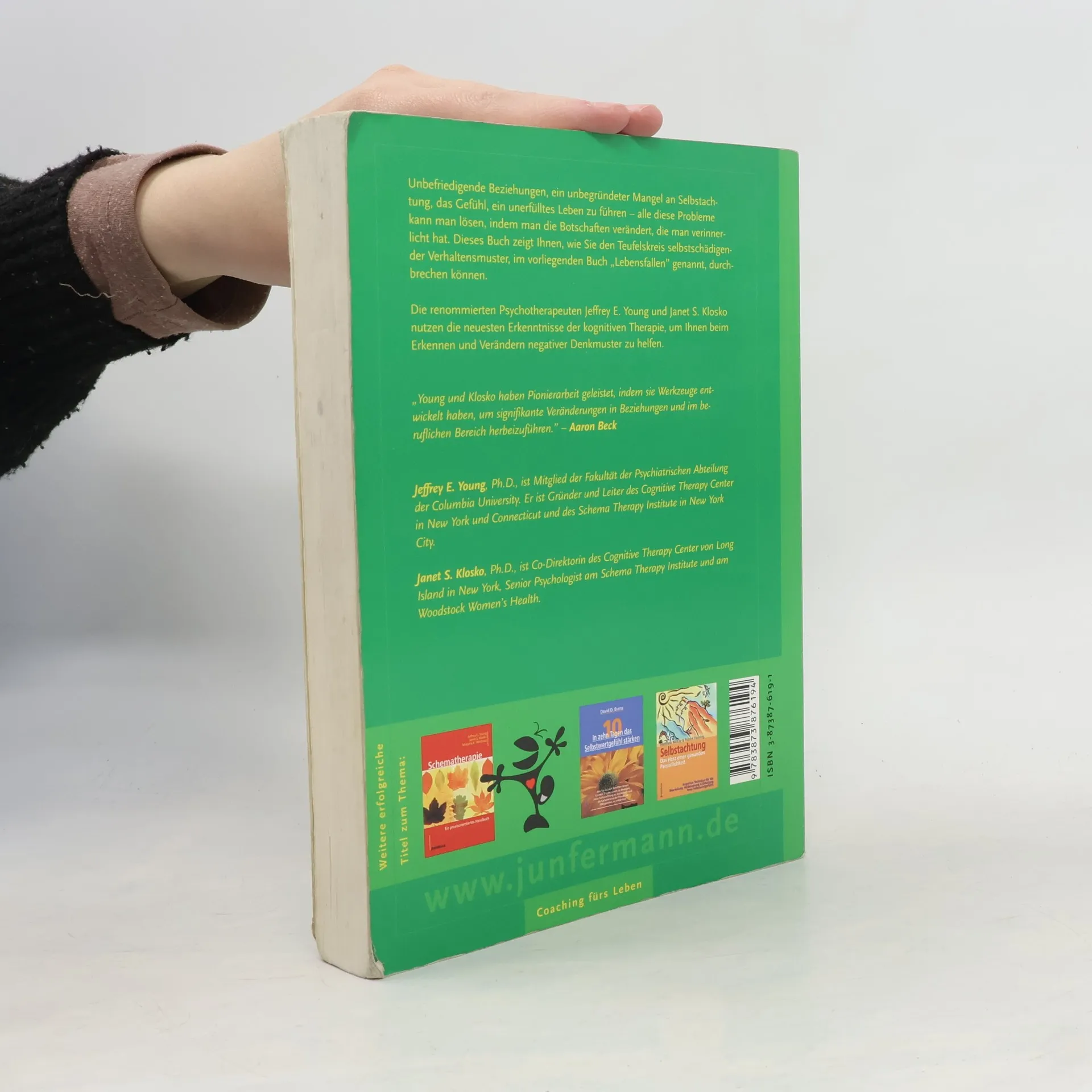 Unbefriedigende Beziehungen, ein unbegründeter Mangel an Selbstachtung, das Gefühl, ein unerfülltes Leben zu führen - alle diese Probleme kann man lösen, indem man die Botschaften verändert, die man verinnerlicht hat. Dieses Buch zeigt Ihnen, wie Sie den Teufelskreis selbstschädigender Verhaltensmuster, im vorliegenden Buch „Lebensfallen“ genannt, durchbrechen können. Die renommierten Psychotherapeuten Jeffrey E. Young und Janet S. Klosko nutzen die neuesten Erkenntnisse der kognitiven Therapie, um Ihnen beim Erkennen und Verändern negativer Denkmuster zu helfen. Sie ersparen Ihnen damit eine langwierige traditionelle Therapie oder die Einnahme von Medikamenten. Die Autoren beschreiben elf der häufigsten „Lebensfallen“, bieten für jede von diesen einen diagnostischen Test an und helfen Ihnen durch detaillierte Empfehlungen, sich aus diesen Fallen zu befreien.