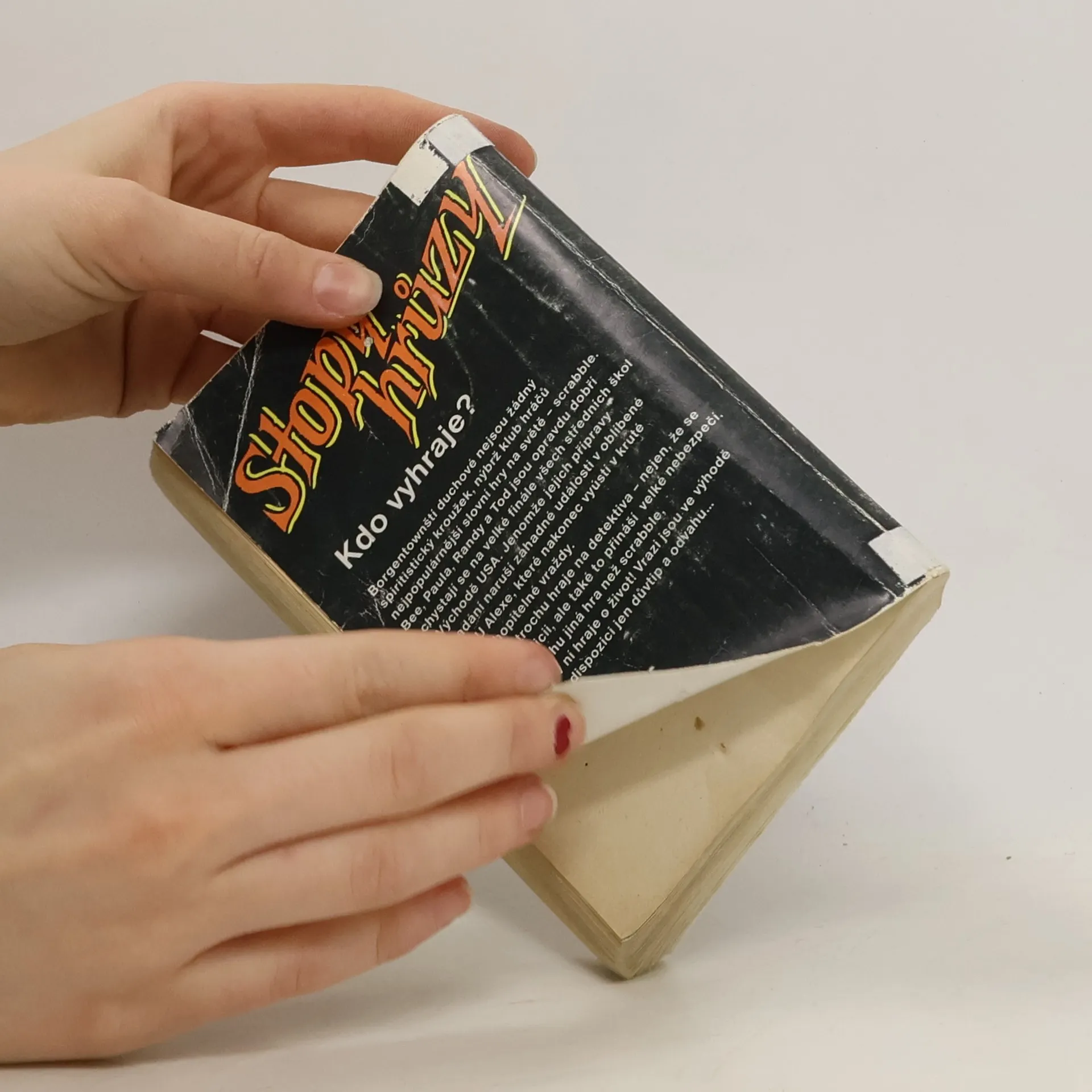 Stopy hrůzy 108, ze série Prokletá škola. Borgentownští duchové nejsou žádný spiritistický kroužek, nýbrž klub hráčů nejpopulárnější slovní hry na světě – scrabble. Bee, Paula, Randy a Tod jsou opravdu dobří a chystají se na velké finále všech středních škol na Východě USA. Jenomže jejich přípravy znenadání naruší záhadné události v oblíbené pizérii U Alexe, které nakonec vyústí v kruté a nepochopitelné vraždy. Bee si tak trochu hraje na detektiva – nejen, že se to nelíbí policii, ale také to přináší velké nebezpečí.Tohle je trochu jiná hra než scrabble, protože se v ní hraje o život! Vrazi jsou ve výhodě a Bee má k dispozici jen důvtip a odvahu… Kdo vyhraje?