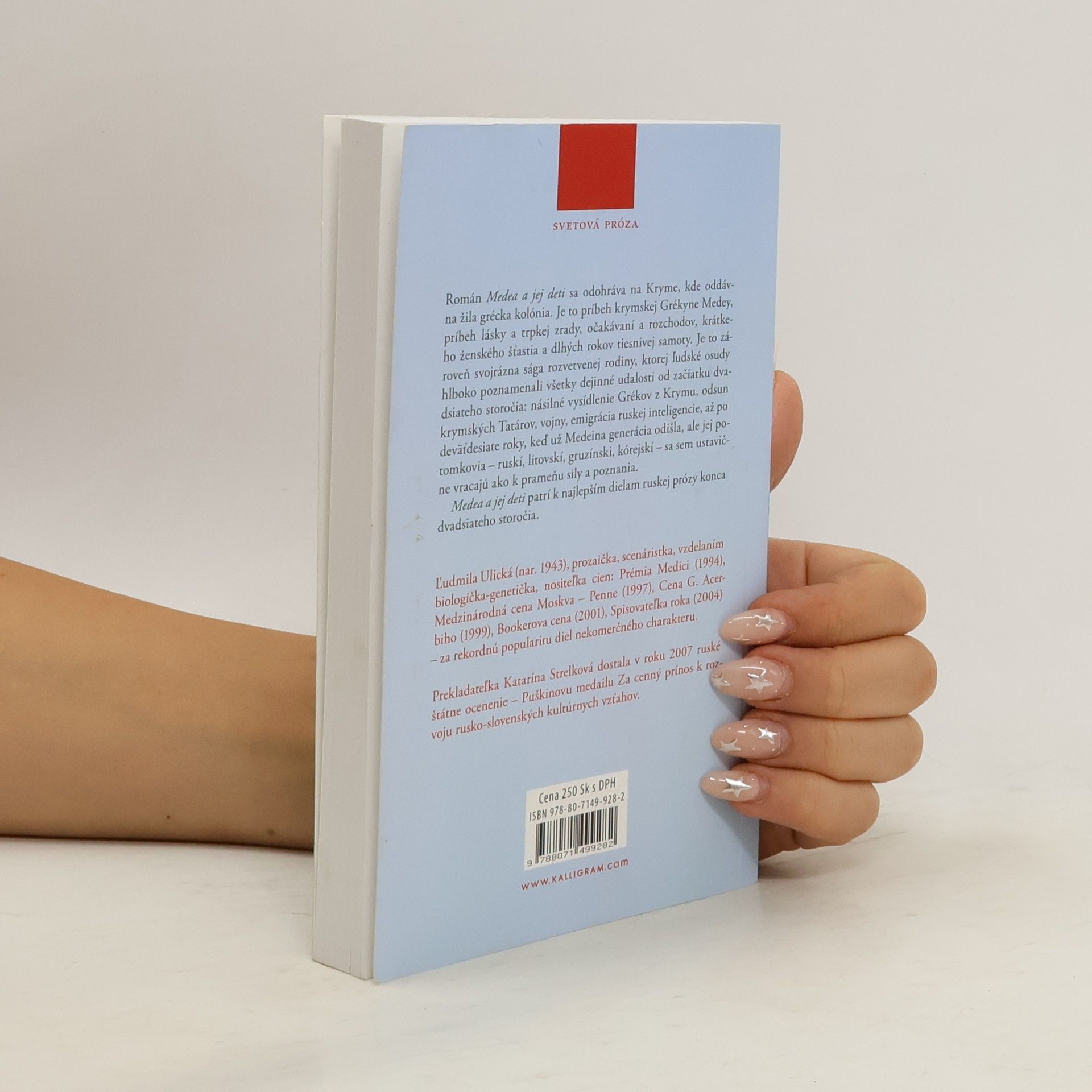 Román Medea a jej deti ruskej prozaičky Ľudmily Ulickej, známej vo svete aj u nás, patrí k najlepším dielam ruskej prózy konca 20. storočia. Medea a jej deti je príbehom krymskej Grékyne Medey, príbehom trpkej zrady, očakávaní a rozchodov, krátkeho ženského šťastia a dlhých rokov tiesnivej samoty, no predovšetkým tichej lásky napĺňajúcej ľudské životy. Zároveň je svojráznou ságou rozvetvenej rodiny, ktorej ľudské osudy hlboko poznamenali všetky udalosti v Rusku od začiatku dvadsiateho storočia – násilné vysídlenie Grékov a Tatárov z Krymu, revolúcia, vojny, emigrácia ruskej inteligencie – až po deväťdesiate roky. Ruskí, litovskí, gruzínski a kórejskí príbuzní rôznych osudov Medey, ženy, ktorá ich po desaťročia stmeľovala, sa ustavične vracajú na miesto, ktoré napriek všetkému ostáva ich domovom. Z ruského orig. preložila Katarína Strelková ; verše prebásnila Katarína Motyková.