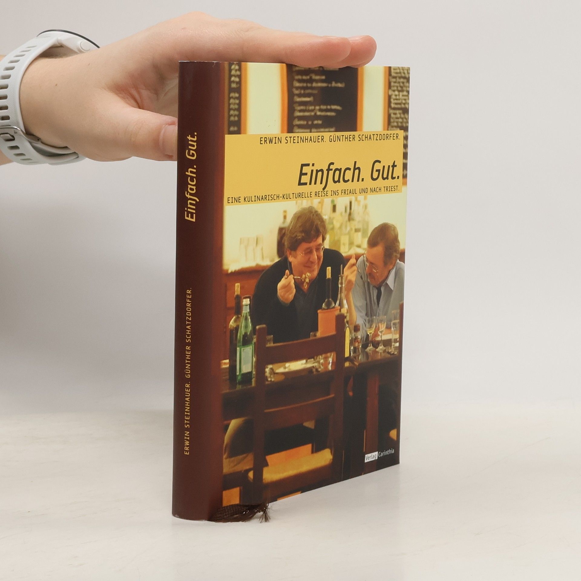 Erwin Steinhauer, der Schauspieler, und Günther Schatzdorfer, der Schriftsteller, machen sich auf die Suche nach den einfachen Dingen des Lebens zwischen Tolmezzo und Triest, zwischen Grado und Görz. Sie besuchen Weinbauern, die in keinem Guide stehen, deren Wein nicht nach Brombeeren und Vanille schmeckt, sondern nach Tokai und Cabernet, wo nicht Sommeliers, sondern die Nachbarn ein und aus gehen. Die Freunde entdecken Kulturdenkmäler, die von der Geschichte des Volkes berichten, also nicht so sehr die Burgen und Dome, sondern die Dorfkirchen, die alten Bauernhöfe, die verfallenden Villen des verarmten Landadels und die Inseln in der Lagune mit ihren Fischerhütten. Das Buch ist ein Reiseführer, der nicht alles verrät, sondern neugierig macht. Der Leser muss sich selbst auf Spurensuche begeben, um seinen persönlichen Weg vom Gebirge ans Meer zu finden. „Einfach gut“ ist ein Handbuch für fröhliche Genießer, die das Nachdenken über Genuss noch nicht verlernt haben.