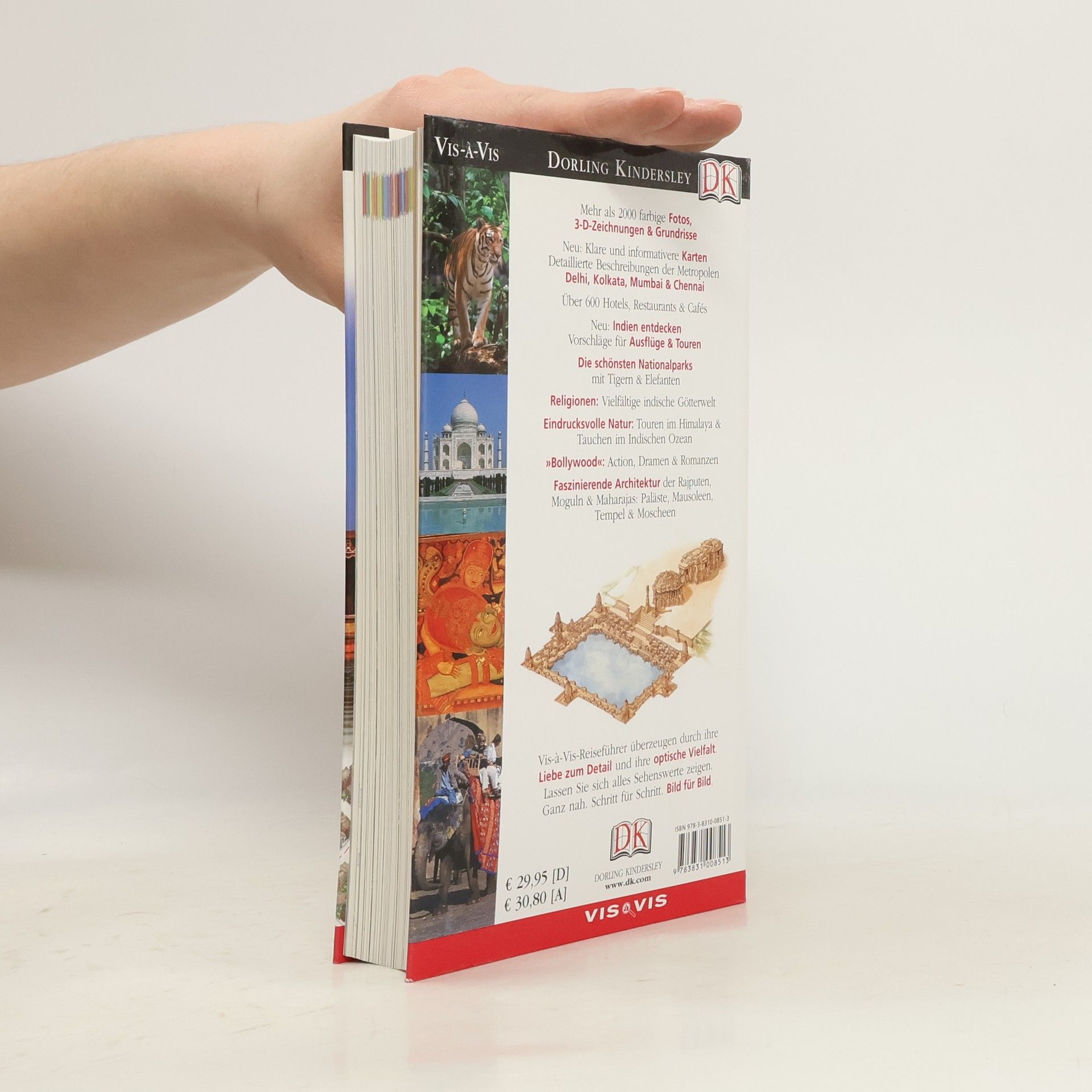 Jahrtausende alte, lebendige Kulturen und Sprachen, kostbare Teppiche und farbenprächtige Saris, Gewürze und imposante Landschaften – mit dem Vis-à-Vis-Reiseführer Indien wird die faszinierende Vielgestaltigkeit des indischen Subkontinents lebendig. Indiens reiche Geschichte und Tradition sind in majestätischen Tempelanlagen und spirituellen Festen stets gegenwärtig. Land und Leute lassen sich am besten beim Trekking, z. B. im Hochland von Ladakh und Zanskar, kennen lernen. In welchen Restaurants die traditionellen Thali besonders köstlich sind, erfährt der Leser im ausführlichen Anhang. Hier finden sich auch viele weitere nützliche Tipps und Adressen.