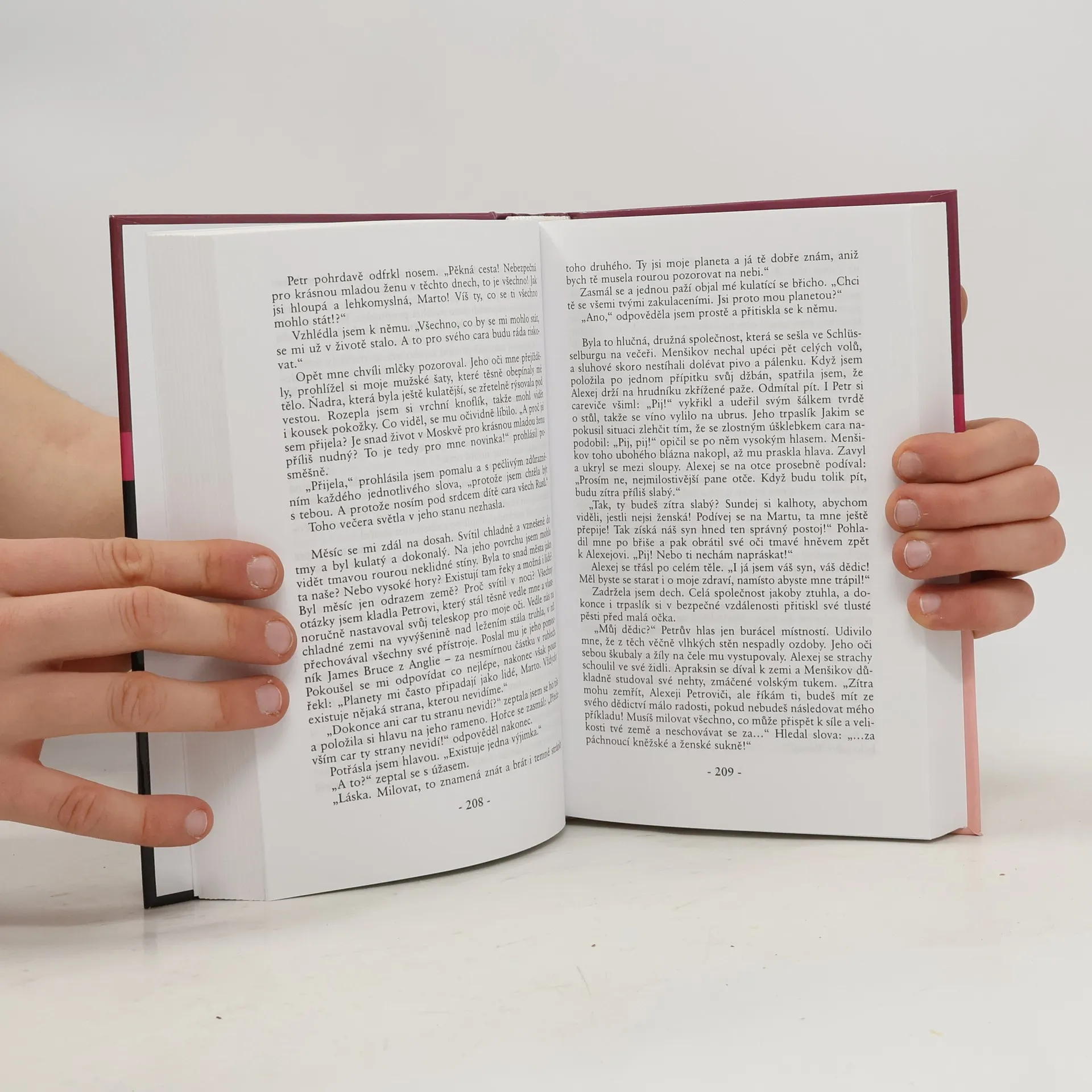 Životopisný román barvitě líčí na pozadí dobové atmosféry život Kateřiny I., druhé ženy cara Petra Velikého, od 80. let 17. století až do okamžiku její smrti. Kateřina I. vypráví nad ložem umírajícího cara příběh svého neobyčejného života. Narodila se roku 1684 jako Marta Skawronská na území tehdejšího Lotyšska v chudé rodině a do konce života se nenaučila číst ani psát. Díky své kráse a chytrosti vystřídala po boku cara jeho první zavrženou manželku a prožila vedle něho život plný vzrušení, násilí, lásky i zrady. Po carově smrti v roce 1725 byla na ruský trůn dosazena carskou gardou, zemi však ve skutečnosti vládla tajná rada vedená A.D.Menšikovem až do carevniny smrti o dva roky později. Autorka v barvitém historickém eposu kreslí v kulisách tehdejšího Ruska plastický portrét neobyčejné ženy, která jako manželka Petra Velikého i jako pozdější carevna se dlouhá léta podílela na řízení osudu celé země.