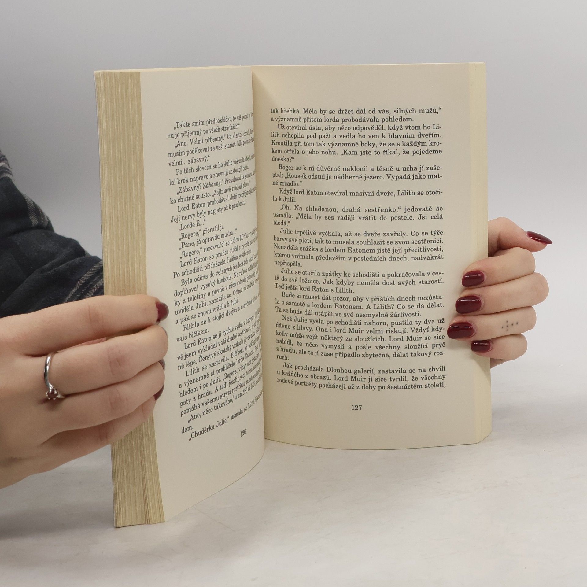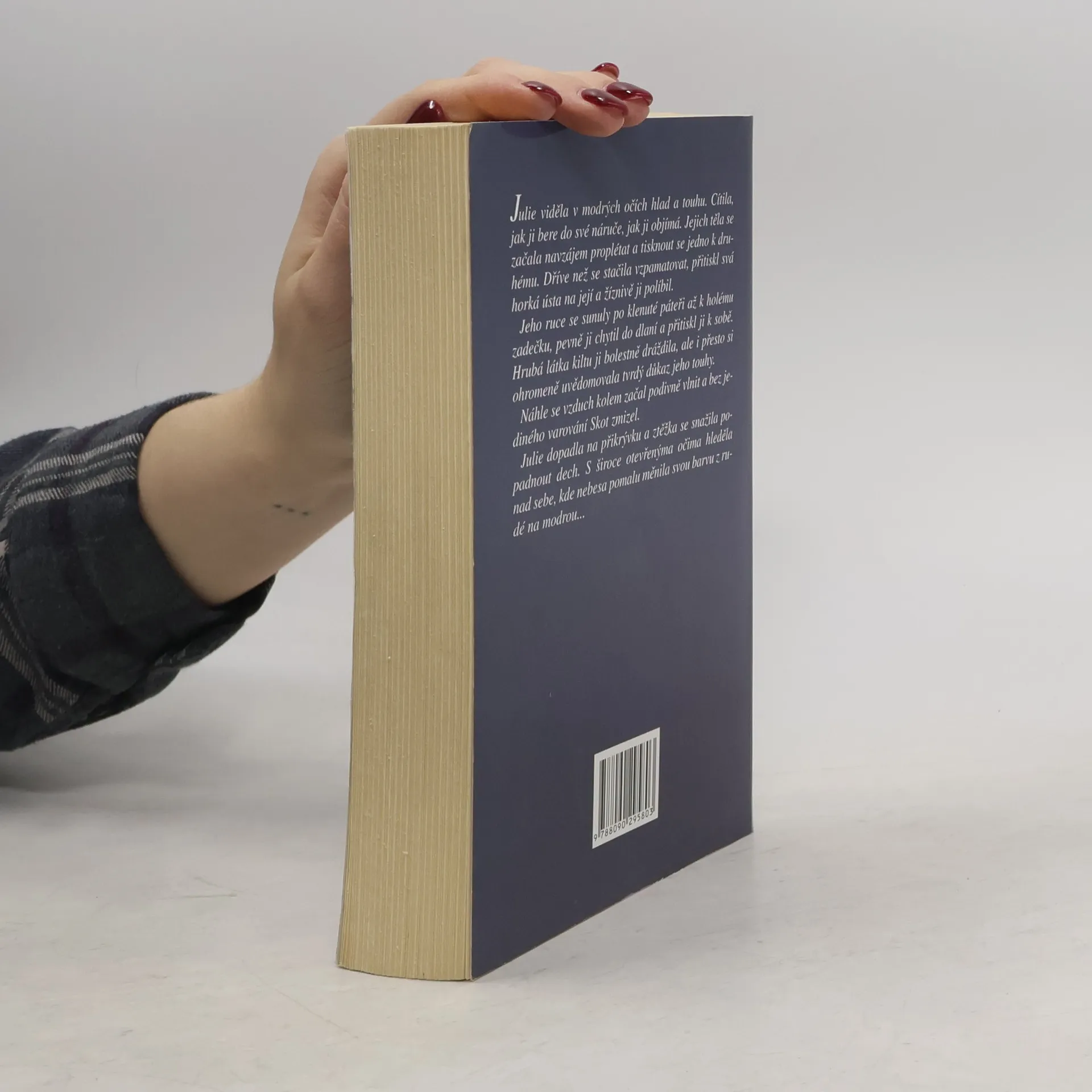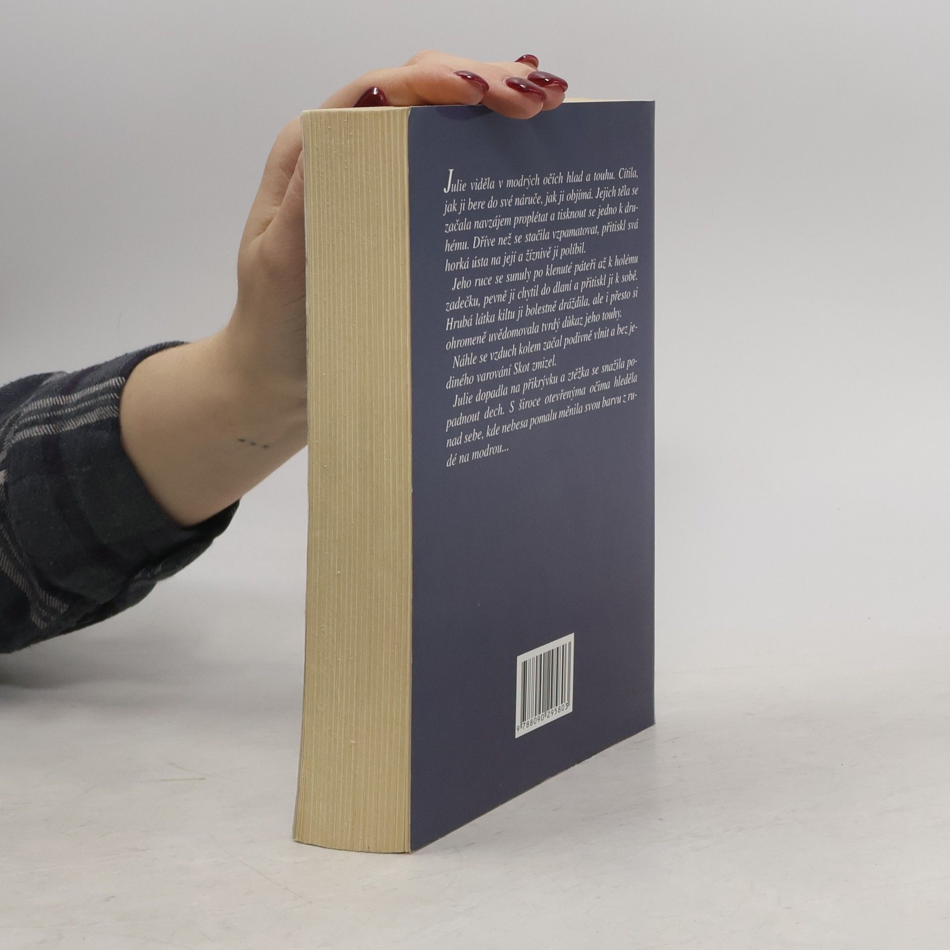 Rok 1893. Krásná Julie Hargrová je po tragické smrti svých rodičů nucena žít v urozené rodině své matky. Společně se svou tetou a dvěma sestřenicemi odjíždí na hrad Dunraven, který je položen v nádherné, i když poněkud odlehlé a drsné přírodě Skotské vysočiny. Během cesty se dozvídá, že se na hradě děje něco podivného. Po dvaceti letech jsou prvními hosty, kteří mají tu čest hrad navštívit. Julie se už nemůže dočkat, až po strastiplné cestě konečně ulehne do měkkých peřin. Jaké je však její překvapení, když na ni zbude jen osamocená ložnice v odlehlé hradní věži. To však ani zdaleka není to nejhorší, čeho by se měla bát. Milostný příběh nádherného smyslného vztahu, plný překvapivých dějových zvratů, dramatických scén, tajemna a sílící lásky mezi Julií a skotským horalem z patnáctého století, vykresluje spisovatelka s barvurní jistotou zkušené autorky oblíbených a čtivých románů.... celý text