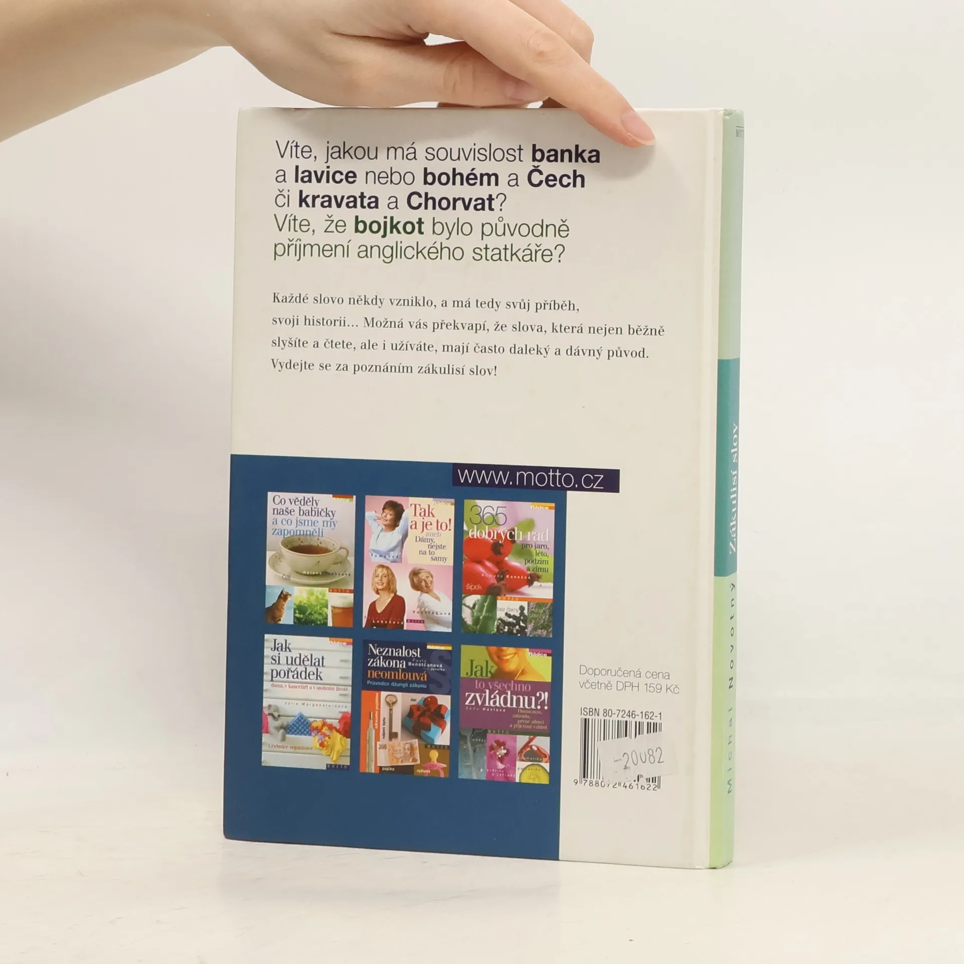 Víte, jakou má souvislost banka a lavice nebo bohém a Čech či kravata a Chorvat? Víte, že bojkot bylo původně příjmení anglického statkáře? Každé slovo někdy vzniklo, a má tedy svůj příběh, svoji historii... Možná vás překvapí, že slova, která nejen běžně slyšíte a čtete, ale i užíváte, mají často daleký a dávný původ. Vydejte se za poznáním zákulisí slov!