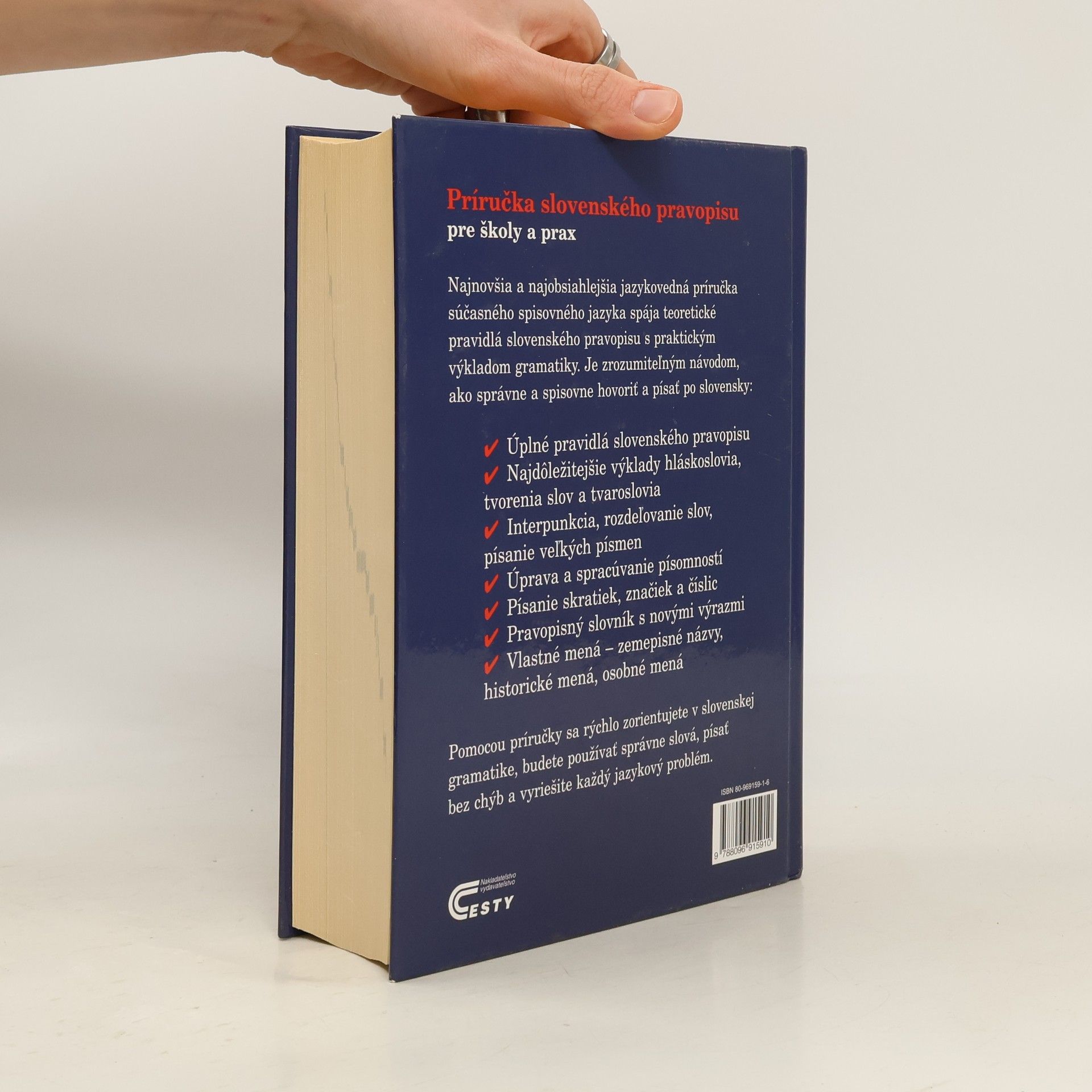 Najnovšia a najobsiahlejšia jazykovedná príručka súčasného spisovného jazyka spája teoretické pravidlá slovenského pravopisu s praktickým výkladom gramatiky. Je zrozumiteľným návodom, ako správne a spisovne hovoriť a písať po slovensky: - Úplné pravidlá slovenského pravopisu - Najdôležitejšie výklady hláskoslovia, tvorenia slov a tvaroslovia - Interpunkcia, rozdeľovanie slov, písanie veľkých písmen - Úprava a spracúvanie písomností - Písanie skratiek, značiek a číslic - Pravopisný slovník s novými výrazmi - Vlastné mená - zemepisné názvy, historické mená, osobné mená Pomocou príručky sa rýchlo zorientujete v slovenskej gramatike, budete používať správne slová, písať bez chýb a vyriešite každý jazykový problém.