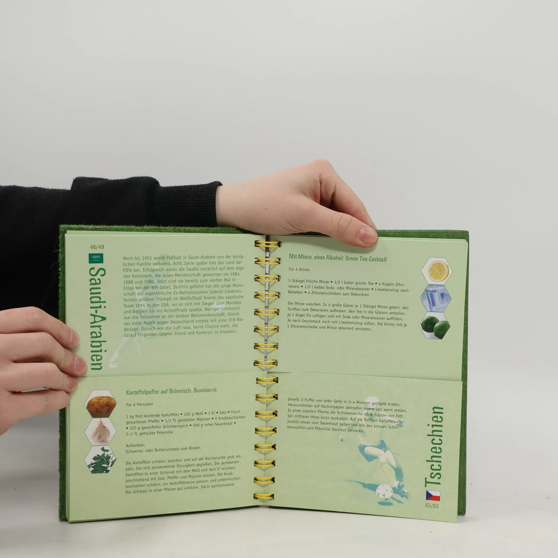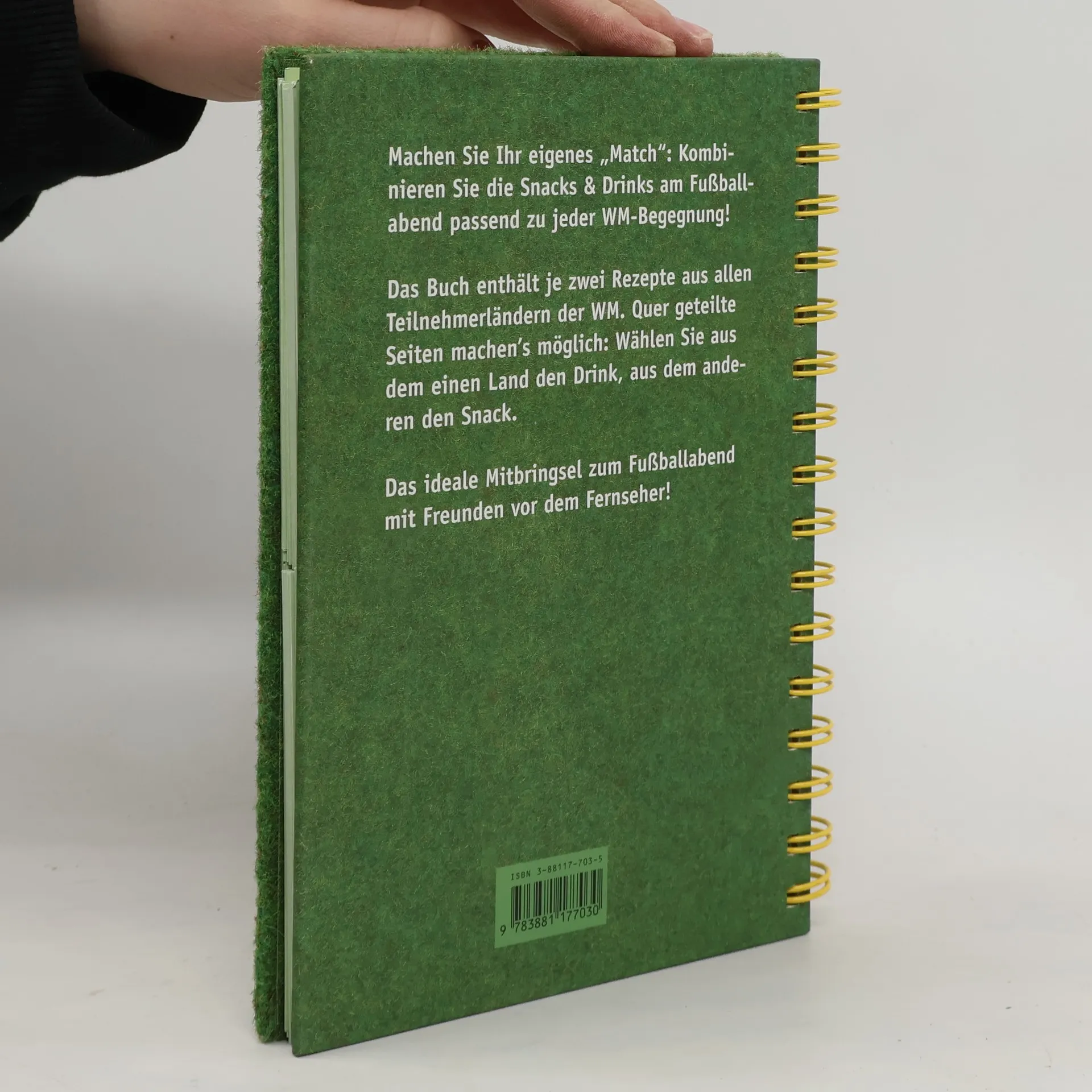 Während der WM 2006 werden sich Abend für Abend mehr oder weniger enthusiastische Fußballfans vor dem Fernseher versammeln, um gespannt das jeweilige Spiel zu verfolgen. Was fehlt, sind kleine Snacks und leckere Drinks, die zum Anlass passen. Mit dem raffinierten System der quer geteilten Seiten in diesem Buch lassen sich alle Paarungen der WM nachvollziehen. Brasilien spielt gegen Italien? Nichts einfacher als das! Wählen Sie aus dem oberen Teil des Buches ein Getränk aus dem einen Land und stellen Sie ihm ein Rezept für einen Snack aus dem anderen Land gegenüber. Machen Sie so ihr eigenes Spiel und „matchen“ sie die Snacks und Drinks passend zu jeder einzelnen WM-Begegnung!