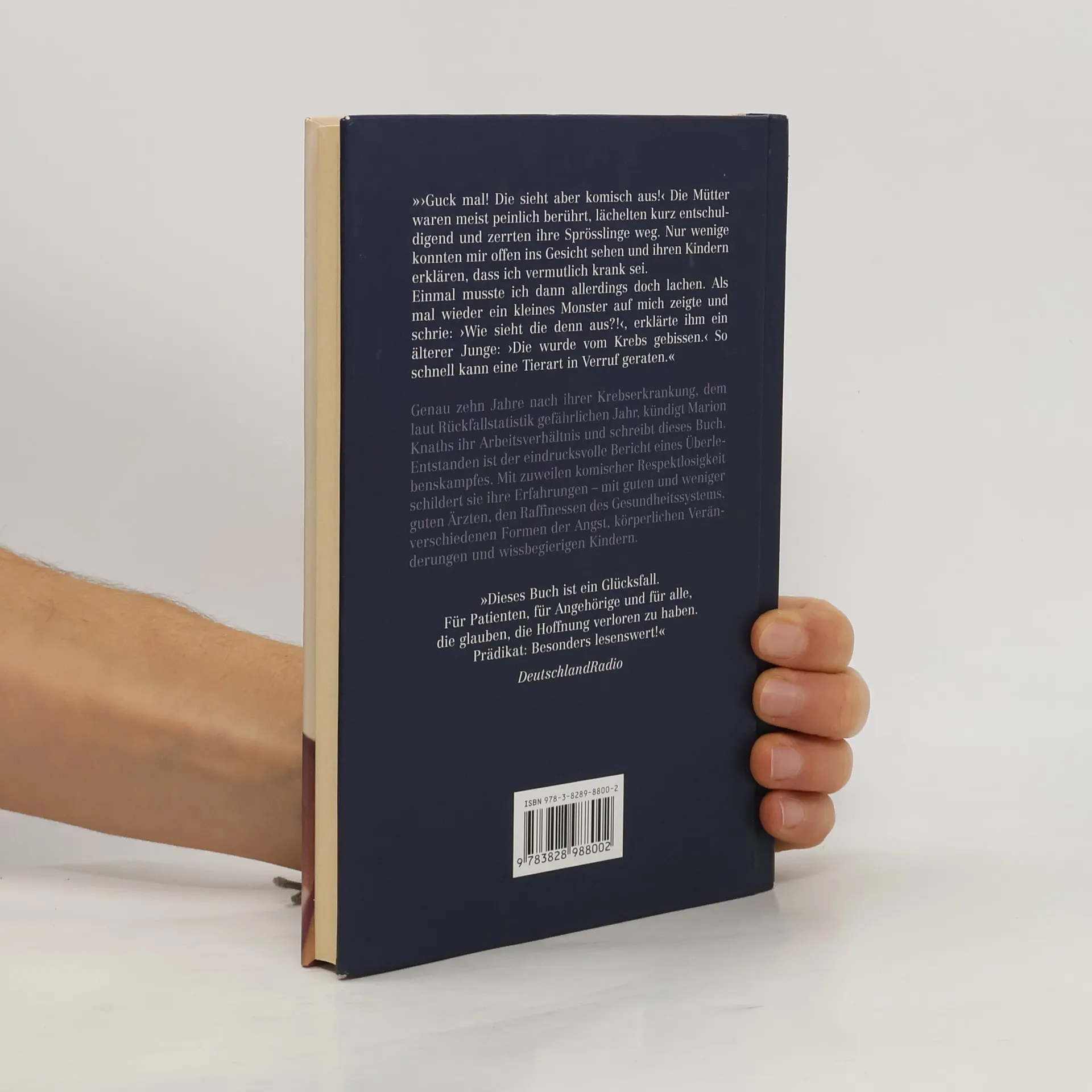 Mit 25 Jahren erhält Marion Knaths, beruflich erfolgreich und voller Zukunftspläne, eine niederschmetternde Diagnose: Morbus Hodgkin im letzten Stadium. Trotz oder gerade wegen aller pessimistischen Prognosen nimmt die junge Frau den Kampf gegen die Krankheit auf. Text(Klappentext o.ä.) Deutsch Genau zehn Jahre nach ihrer Krebserkrankung, dem laut Rückfallstatistik gefährlichen Jahr, kündigt Marion Knaths ihr Arbeitsverhältnis und schreibt dieses Buch. Entstanden ist der eindrucksvolle Bericht eines Überlebenskampfes. Mit zuweilen komischer Respektlosigkeit schildert sie ihre Erfahrungen - mit guten und weniger guten Ärzten, den Raffinessen des Gesundheitssystems, verschiedenen Formen der Angst, körperlichen Veränderungen und wissbegierigen Kindern. Dieses Buch erzählt nicht nur vom Sieg über eine tödliche Krankheit, es gibt auch Angehörigen und Freunden eine Orientierung, wie man mit Schwerstkranken leben und ihnen helfen kann, selbst wenn jede Hoffnung bereits verloren scheint.