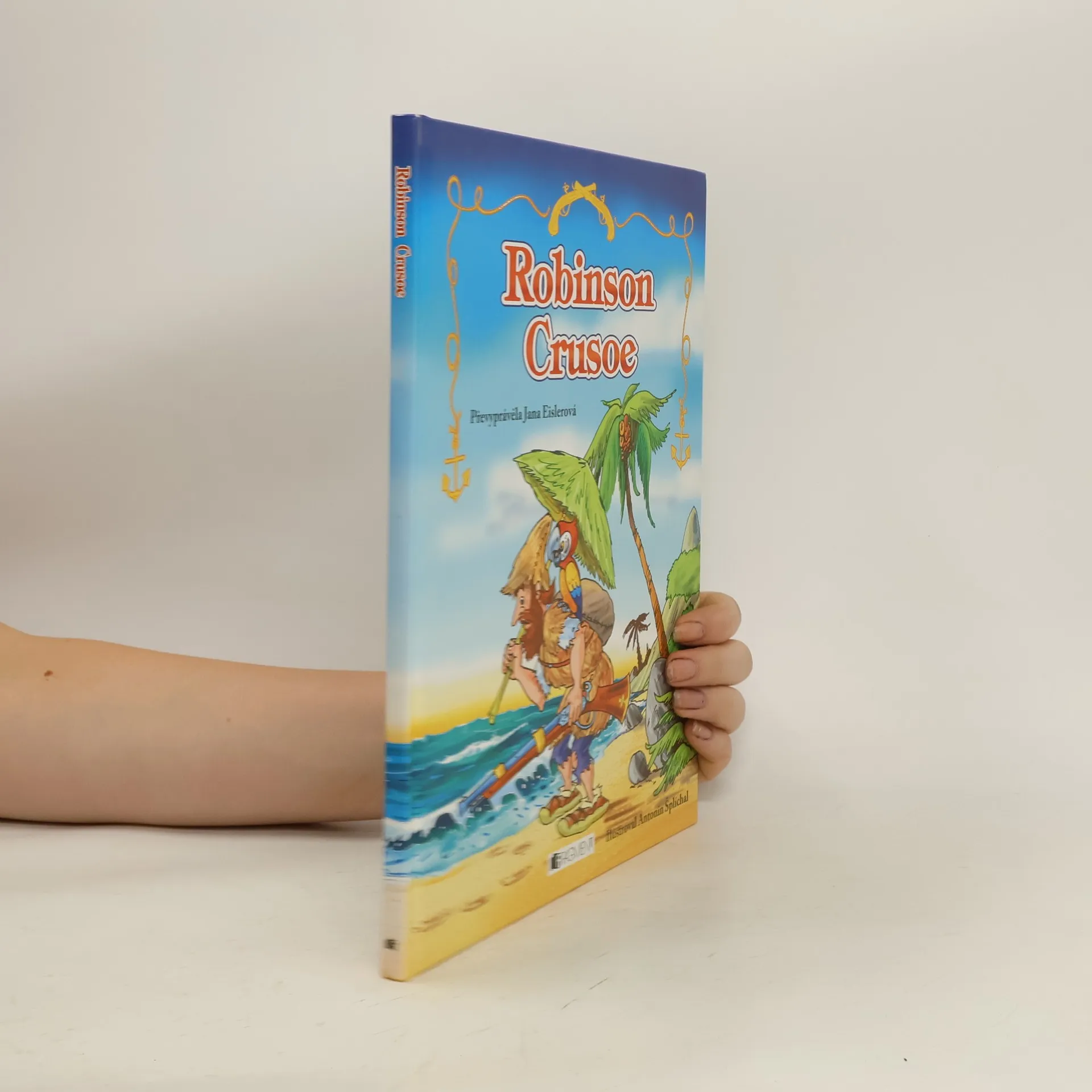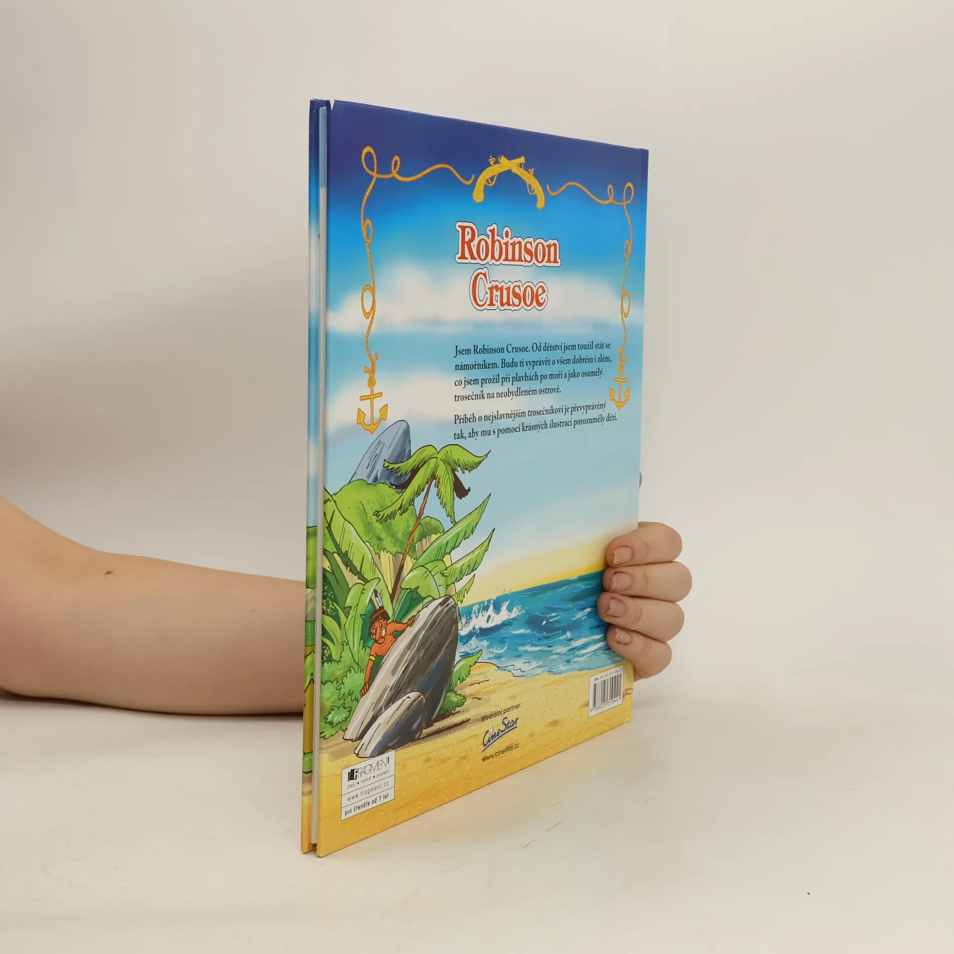 Jsem Robinson Crusoe, námořník, který ztroskotal na pustém ostrově. Stal se ze mě osamělý trosečník, čekající na záchranu. Než připluje loď, která mě vysvobodí, povím ti o svých dobrodružstvích a zážitcích.Příběh o nejslavnějším trosečníkovi je převyprávěný tak, aby mu s pomocí krásných ilustrací porozuměly děti.