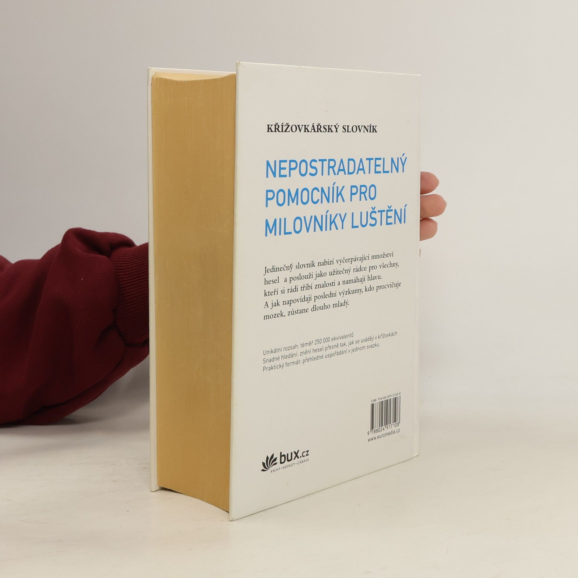 Jedinečný slovník a nepostradatelný pomocník pro milovníky luštění nabízí vyčerpávající množství hesel a poslouží jako užitečný rádce pro všechny, kteří si rádi tříbí znalosti a namáhají hlavu. A jak napovídají poslední výzkumy, kdo procvičuje mozek, zůstane dlouho mladý.
