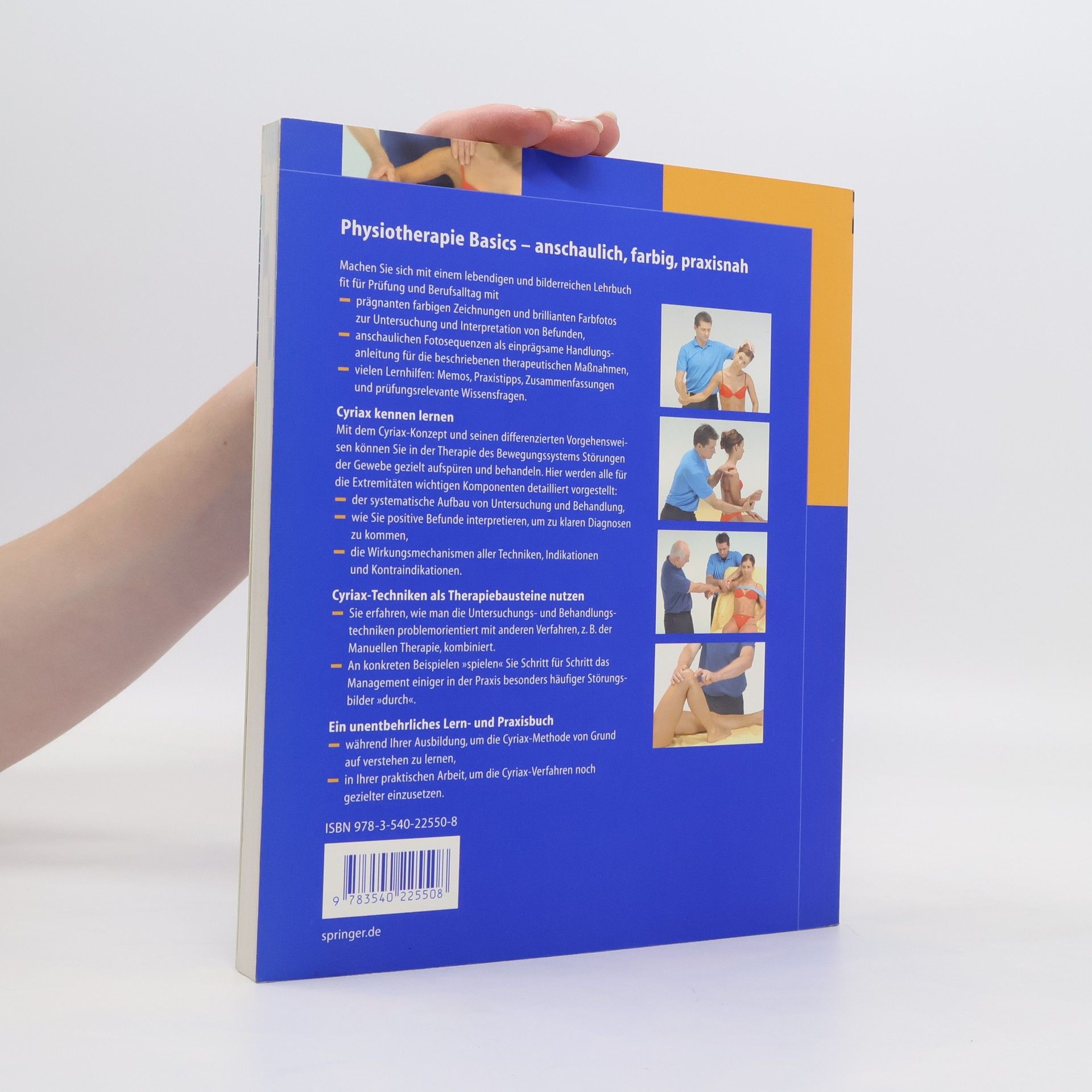 Modernes Patientenmanagement nach Dr. James Cyriax: Das Lehr- und Praxisbuch liefert die konkrete Anleitung. Fotosequenzen veranschaulichen wie Sie systematisch untersuchen und behandeln, positive Befunde interpretieren, damit zu klaren Diagnosen kommen und Cyriax-Techniken mit anderen Verfahren wie z.B. manueller Therapie kombinieren. Zus tzlich enthalten sind Wirkungsmechanismen der Techniken, (Kontra)indikationen, Beispiele zu h ufigen St rungsbildern. Mit Cyriax arbeiten: mit Hilfe der detaillierten Fotoserien und praxisorientierten Anleitung zur Untersuchung, Interpretation der Befunde und Behandlungsplanung f llt Ihnen das nicht schwer