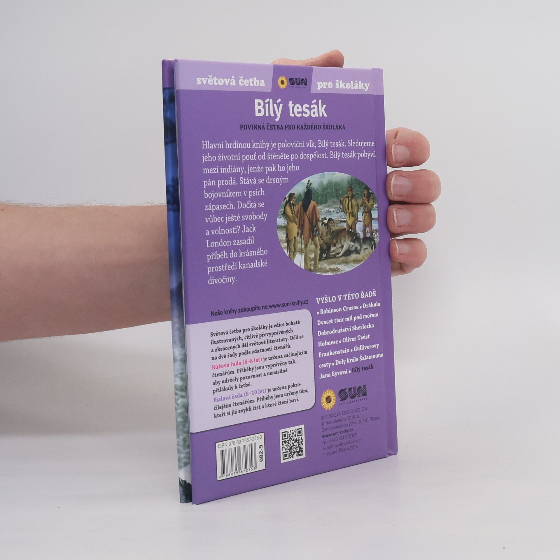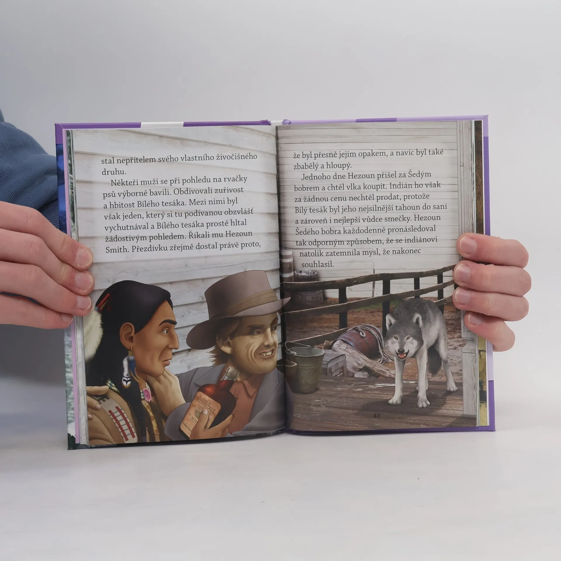 Hlavním hrdinou knihy je poloviční vlk, Bílý tesák. Sledujeme jeho životní pouť od štěněte po dospělost. Bílý tesák pobývá mezi indiány, jenže pak ho jeho pán prodá. Stává se drsným bojovníkem v psích zápasech. Dočká se vůbec ještě svobody a volnosti.