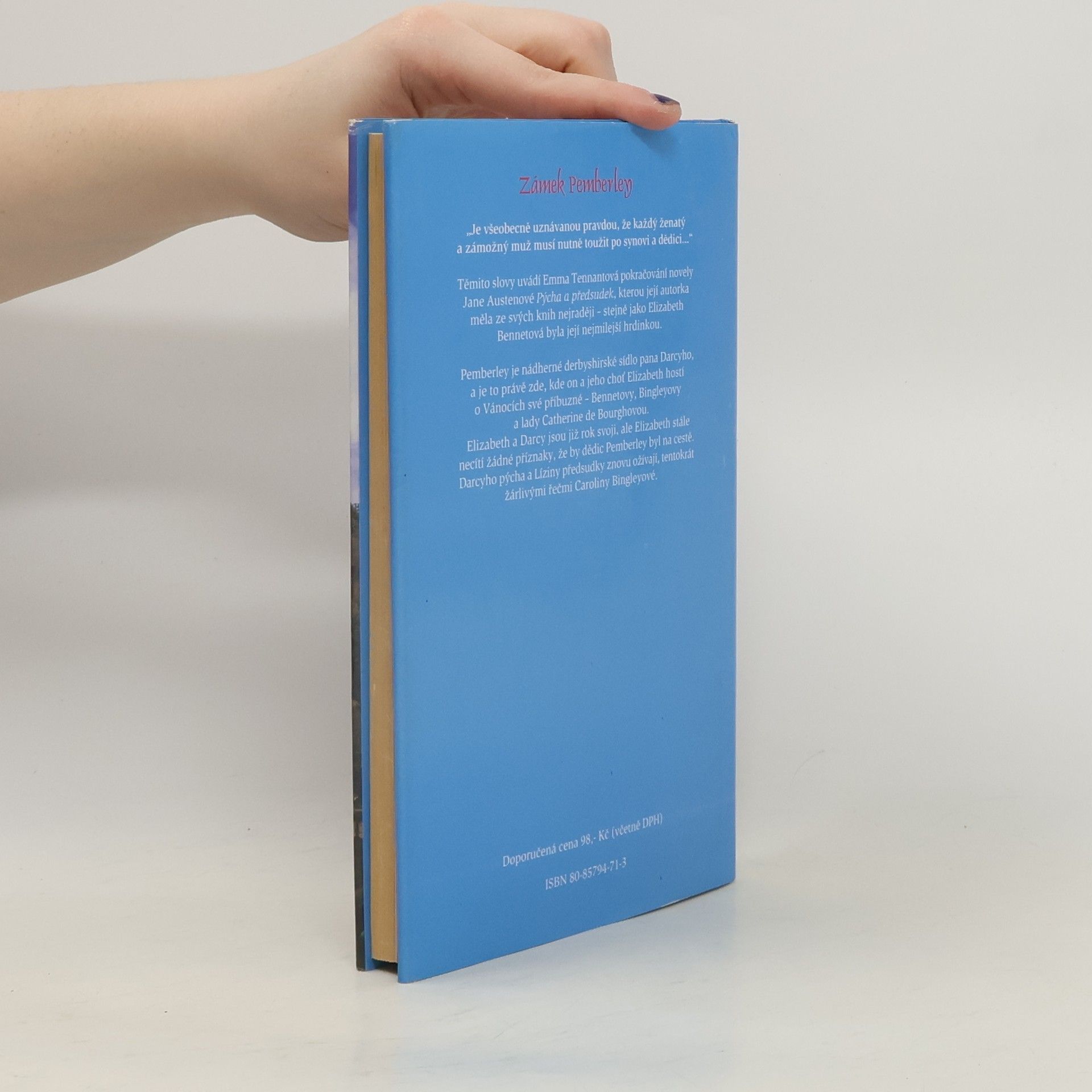 Těmito slovy uvádí Emma Tennantová pokračování novely Jane Austenové Pýcha a předsudek, kterou její autorka měla ze svých knih nejraději - stejně jako Elizabeth Bennetová byla její nejmilejší hrdinkou. Pemberley je nádherné derbyshirské sídlo pana Darcyho, a je to právě zde, kde on a jeho choť Elizabeth hostí o Vánocích své příbuzné - Bennetovy, Bingleyovy a lady Catherine de Bourghovou. Elizabeth a Darcy jsou již rok svoji, ale Elizabeth stále necítí žádné příznaky, že by dědic Pemberley byl na cestě. Darcyho pýcha a Líziny předsudky znovu ožívají, tentokrát žárlivými řečmi Caroliny Bingleyové. Život manželů Darcyových v prvním roce po svatbě je námětem dopsaného pokračování slavného románu J. Austenové.“Je všeobecně uznávanou pravdou, že každý ženatý a zámožný muž musí nutně toužit po synovi a dědici…”