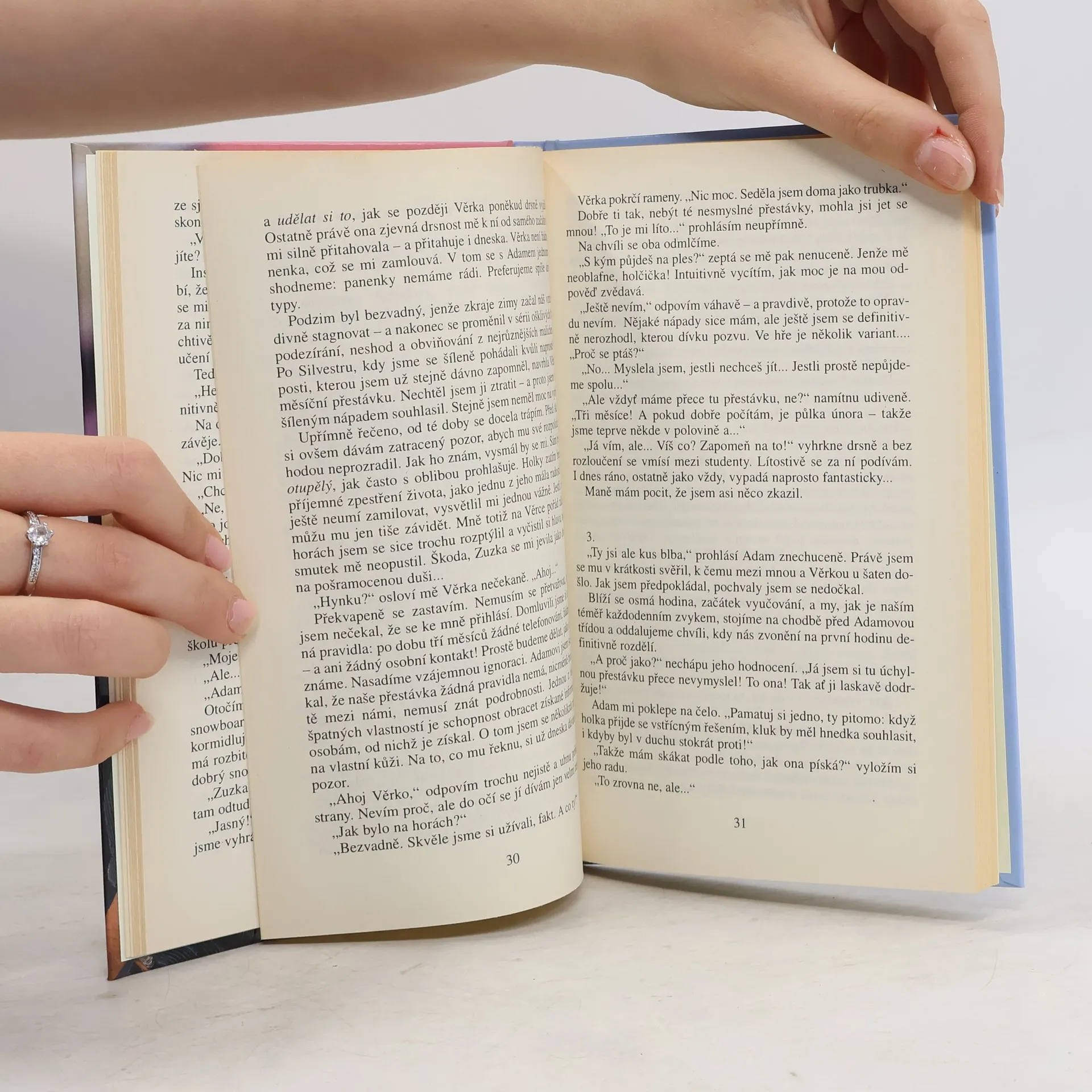 Na kolotoči lásek se od počátku příběhu točí dvojčata Adam a Hynek, kteří jsou si k nerozeznání podobni a dokáží toho patřičně využít. Čtení pro dívky. Podobnost dvojčat Adama a Hynka je úžasná, ale nemusí být vždy výhodou. Zvláště, když mají oba zájem o stejnou dívku, studentku gymnázia Drahušku. Drahuška se na basketbalovém zápase na první pohled zamiluje do Adama. Pak ale shodou okolností získá telefonní číslo na Hynka a ten pod jménem svého jednovaječného dvojčete začne s Drahuškou chodit. Když to Adam zjistí, rozpoutá se mezi dvojčaty nelítostný boj.