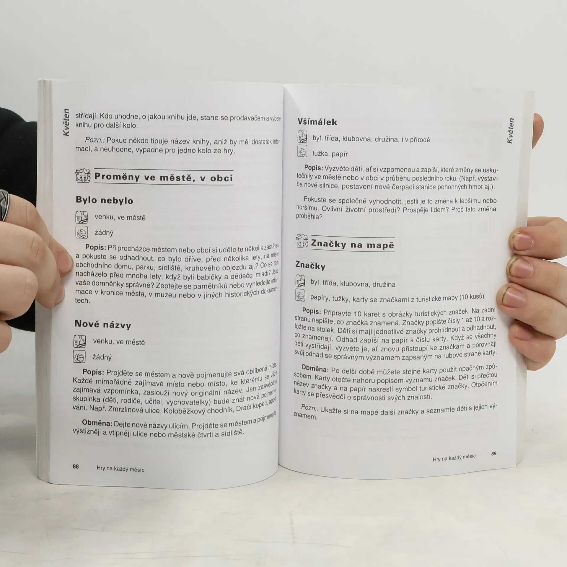 Pro děti od 5 do 11 let. Kniha ve dvanácti kapitolách nazvaných podle jednotlivých měsíců v roce předkládá soubor téměř tří set námětů pro činnost s dětmi. Hry jsou rozčleněny do několika tematických celků, které zahrnují lidové zvyky a tradice, aktivity podporující rozvoj poznávacích, tvořivých, sportovních a sociálních dovedností dětí ve věku od 6 do 11 let. Čtenářům z řad učitelů 1. stupně, vychovatelů či vedoucích zájmových skupin publikace poslouží jako praktická příručka, stačí nalistovat příslušný měsíc a vybrat si některé z uvedených her. U každé hry je uveden metodický popis, potřebný materiál a prostředí vhodné k realizaci. Hry a činnosti lze použít jednotlivě nebo v tematických celcích.
