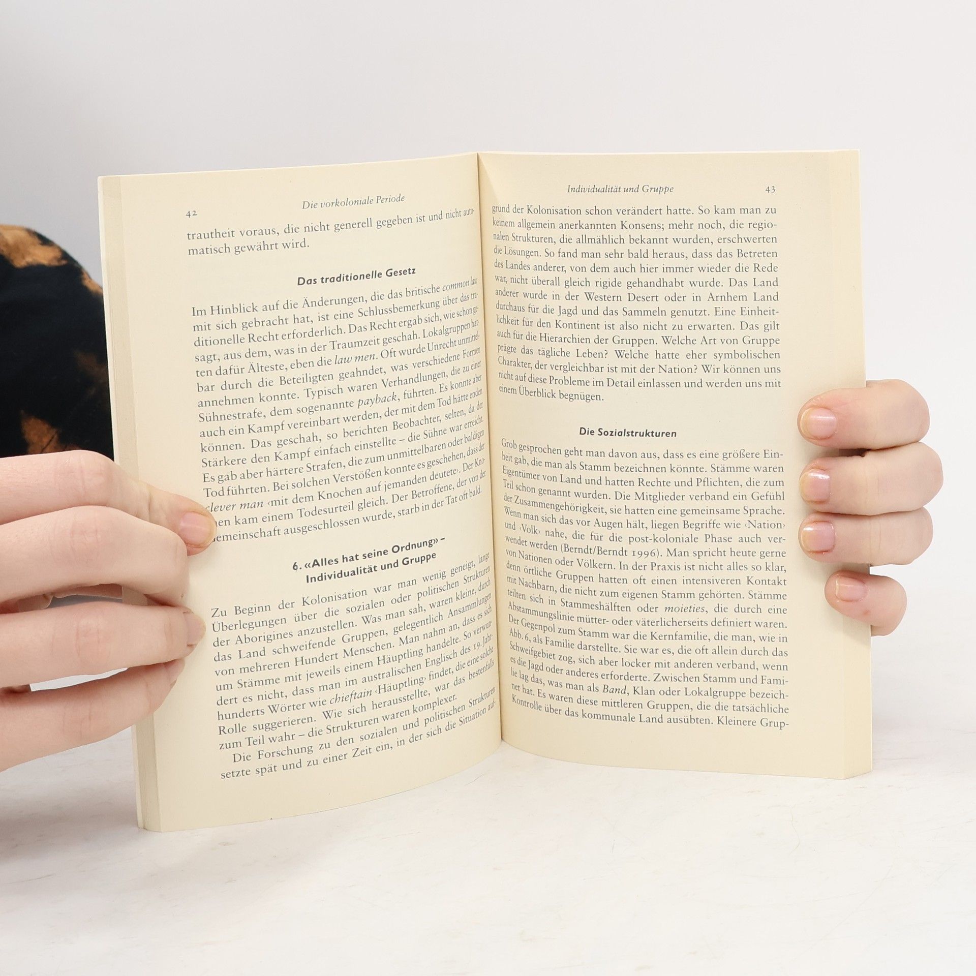 Im Mittelpunkt dieser Geschichte der Aborigines von der Urzeit bis heute stehen die materielle, geistige, künstlerische und religiöse Kultur sowie politische Fragen, die besonders in den letzten Jahrzehnten aufgeworfen wurden. Das Buch ist zwangsläufig aus europäischer Perspektive geschrieben, vermeidet aber weitgehend Werturteile und lässt Aborigines authentisch zu Wort kommen, wo immer das möglich ist.