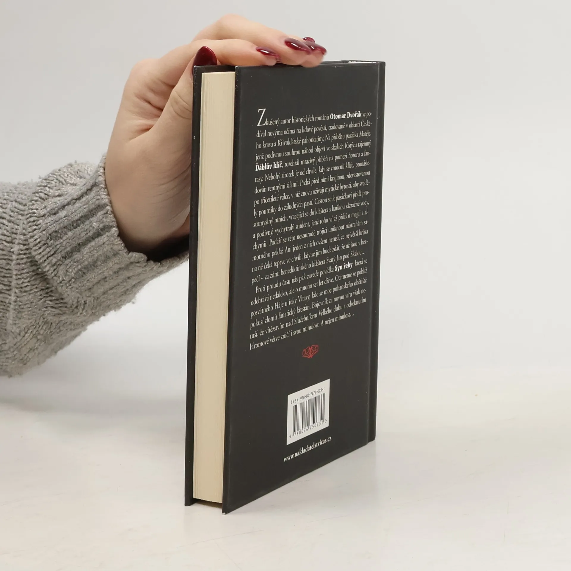 Zkušený autor historických románů Otomar Dvořák se podíval novýma očima na lidové pověsti, tradované v oblasti Českého krasu a Křivoklátské pahorkatiny. Na příběhu pasáčka Matěje, jenž podivnou souhrou náhod objeví ve skalách Kotýzu tajemný Ďáblův klíč, rozehrál mrazivý příběh na pomezí hororu a fantasy. Nebohý sirotek je od chvíle, kdy se zmocnil klíče, pronásledován temnými silami. Prchá před nimi krajinou, zdevastovanou po třicetileté válce, v níž znovu ožívají mytické bytosti, aby sváděly poutníky do záludných pastí. Cestou se k pasáčkovi přidá prostomyslný mnich, vracející se do kláštera s baňkou zázračné vody, a podivný, vychytralý student, jenž toho ví až příliš o magii a alchymii. Podaří se této nesourodé trojici uniknout nástrahám samotného pekla? Ani jeden z nich ovšem netuší, že největší hrůza na ně čeká teprve ve chvíli, kdy se jim bude zdát, že už jsou v bezpečí – za zdmi benediktinského kláštera Svatý Jan pod Skalou… Proti proudu času nás pak zavede povídka Syn řeky, která se odehrává nedaleko, ale o mnoho set let dříve. Ocitneme se poblíž posvátného Háje u řeky Vltavy, kde se moc pohanského obětiště pokusí zlomit fanatický křesťan. Bojovník za novou víru však netuší, že vítězstvím nad Služebníkem Velkého dubu a odseknutím Hromové větve zničí i svou minulost. A nejen minulost…