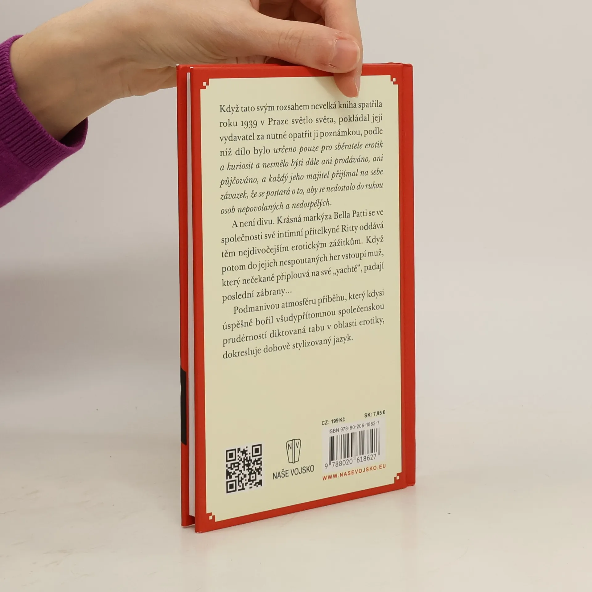 Když tato svým rozsahem nevelká kniha spatřila roku 1939 v Praze světlo světa, pokládal její vydavatel za nutné opatřit ji poznámkou, podle níž dílo bylo určeno pouze pro sběratele erotik a kuriosit a nesmělo býti dále ani prodáváno, ani půjčováno, a každý jeho majitel přijímal na sebe závazek, že se postará o to, aby se nedostalo do rukou osob nepovolaných a nedospělých. A není divu. Krásná markýza Bella Patti se ve společnosti své intimní přítelkyně Ritty oddává těm nejdivočejším erotickým zážitkům. Když potom do jejich nespoutaných her vstoupí muž, který nečekaně připlouvá na své „yachtě“, padají poslední zábrany… Podmanivou atmosféru příběhu, který kdysi úspěšně bořil všudypřítomnou společenskou prudérností diktovaná tabu v oblasti erotiky, dokresluje dobově stylizovaný jazyk.