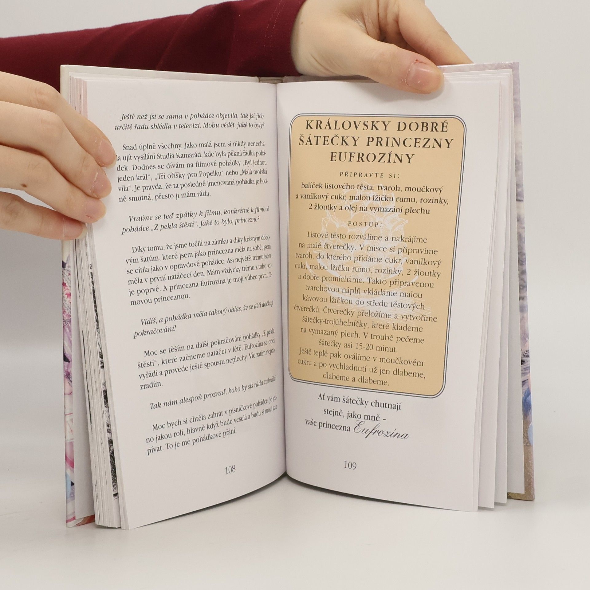 Rozhovory s filmovými a televizními představiteli pohádkových postav jsou zaměřeny na dětského čtenáře. Na vysokém kopci stojí zámek plný kouzel. Za úplňku se sem sjíždějí snad všechny pohádkové postavy. Veselí se, tančí, hodují - a autor této knížky měl to štěstí, že se mu podařilo s některými z nich pohovořit. Zajímá vás nejoblíbenější jídlo Popelky Evy Hruškové? Nebo s čím si nejraději hrál malý Princ Ricardo Michala Dlouhého? Čeho se v dětství může bát čert - třeba ten z pohádky "Z pekla štěstí"? A kterou pohádku měla nejraději Zlatovláska Jorga Kotrbová, když byla tak velká jako vy? Na to všechno (a ledacos dalšího) byl zvědavý i Luboš Nečas. Co se dověděl, sepsal v této knížce - a doplnil recepty na oblíbená jídla pohádkových představitelů.