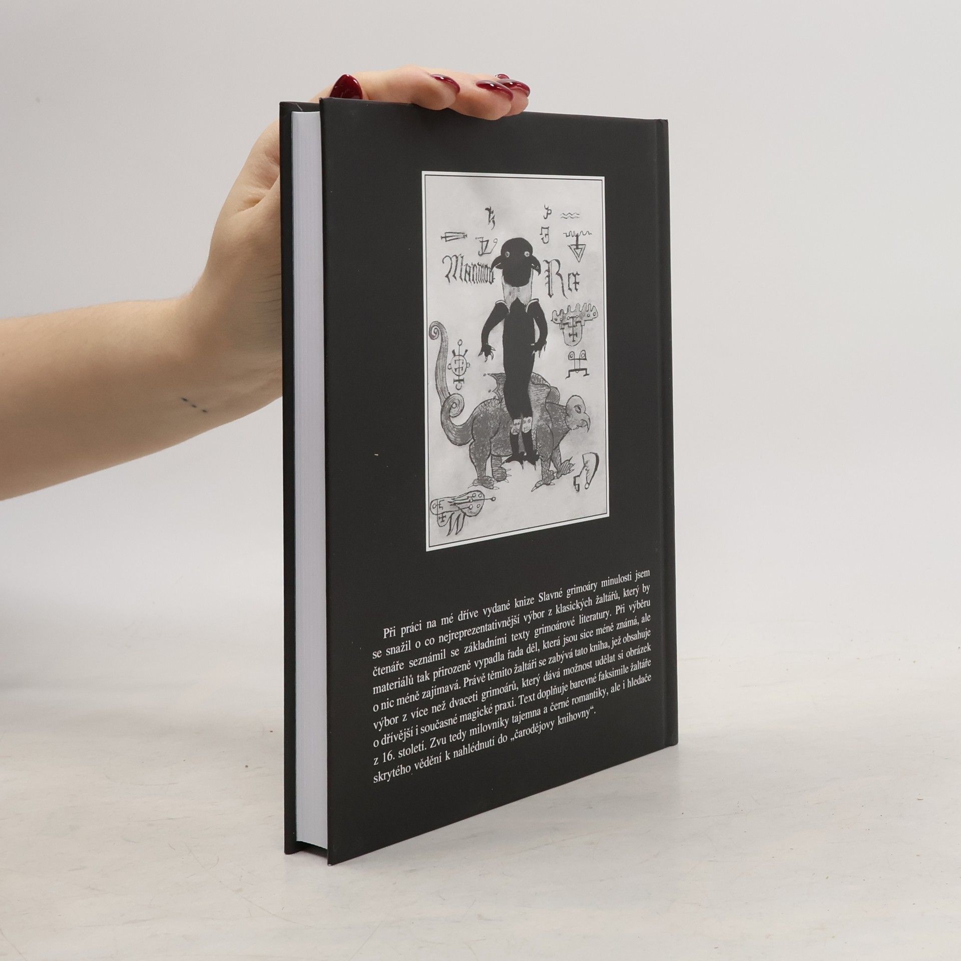 Kniha obsahuje výbor z více než dvaceti grimoárů, který dává možnost udělat si obrázek o dřívější i současné magické praxi. Text doplňují barevné faksimile žatláře z 16. století.