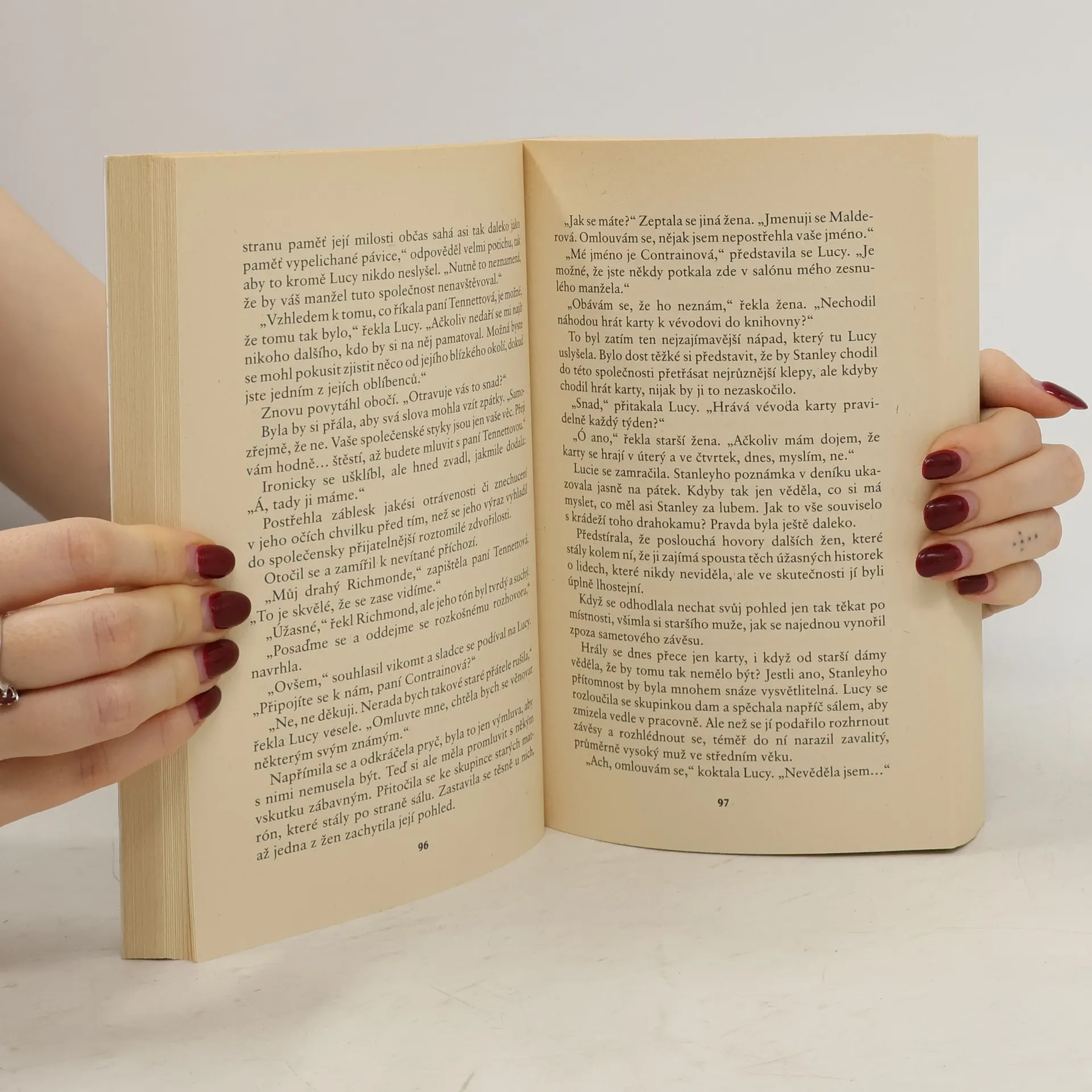 Romantický příběh lásky mladé krásné vdovy, která po smrti manžela zůstala zadlužená, bez přátel a bez vyhlídek do budoucnosti. Setkání s charismatickým šlechticem vneslo do jejího života dobrodružství, naději a nakonec i skutečnou lásku. anotace cervenaknihovna.cz: Lucie Contrainová má velké potíže. Před několika měsíci ovdověla, a jediné, co jí manžel zanechal, jsou dluhy. Služebnictvo je dávno propuštěno, všechno cenné prodáno, ale věřitelé stále neodbytně tlučou na dveře. Dokonce to vypadá, že Lucy přijde i o střechu nad hlavou. A aby těch starostí nebylo málo, u dveří se objevuje vikomt Nicolas Ramsey, muž s krásnou tváří, a poněkud méně líbivou reputací, a žádá po chudé vdově něco, co si její manžel neprávem přivlastnil. Po prvním rozhořčení začíná Lucy zjišťovat, že život jejího manžela skrýval mnohá nepříjemná tajemství. Jenže „věc“ přezdívaná Šarlatová vdova, kterou vikomt urputně hledá, nalezena není, a když Lucy zjistí, že je na ni vypsána vysoká odměna, vidí v tom naději na záchranu. Proto se rozhodne Nicolasovi pomáhat v hledání…