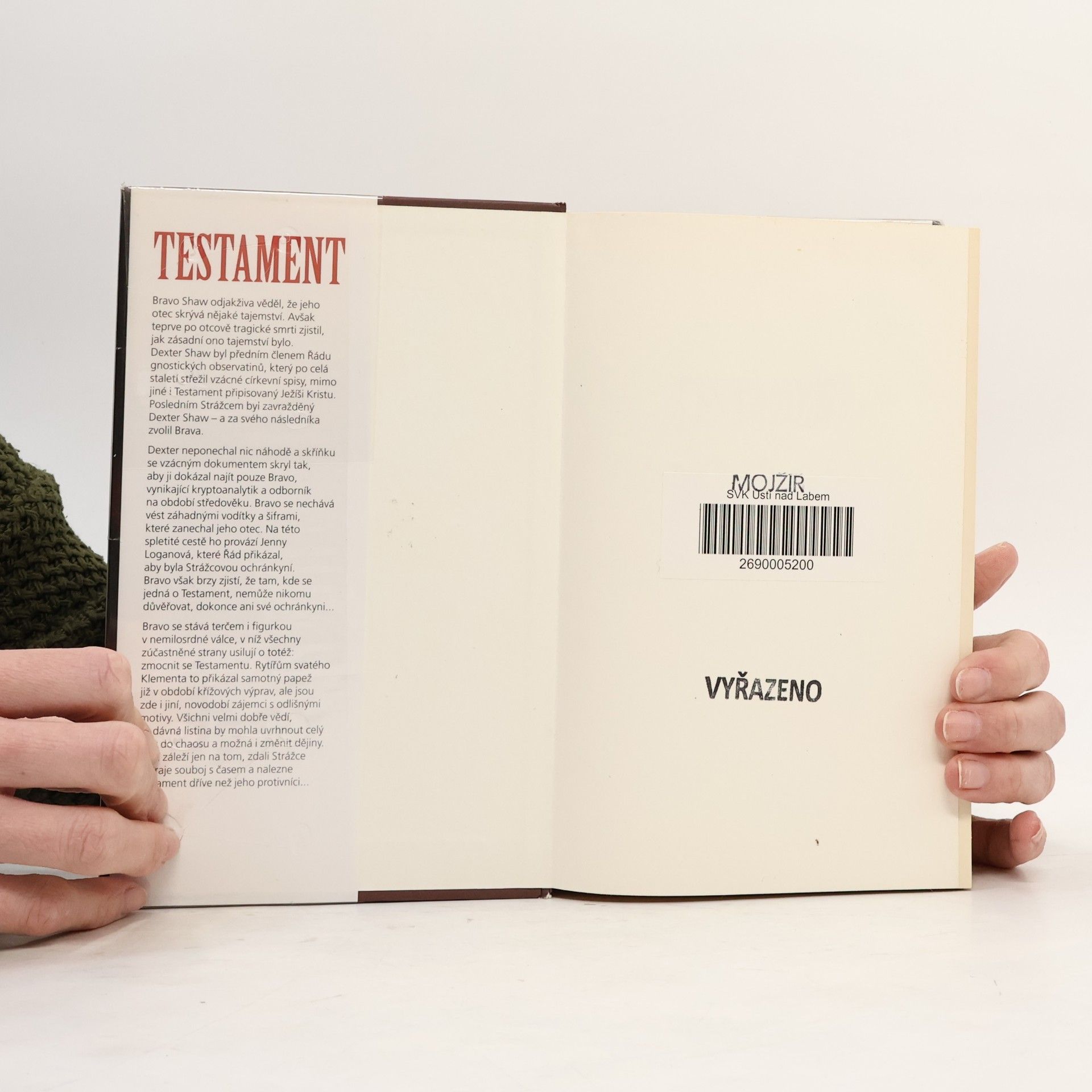 Bravo Shaw odjakživa tušil, že jeho otec skrývá nějaké tajemství. Avšak teprve po otcově tragické smrti zjistí, jak zásadní ono tajemství je. Bravův otec Dexter Shaw byl předním členem řádu gnostických observantů, který byl pronásledován rytíři svatého Klementa, neboť po celá staletí střežil vzácný církevní spis – Testament připisovaný Ježíši Kristovi. Posledním strážcem Testamentu byl Dexter Shaw, který za svého následníka zvolil právě Brava. Bravo postupně odhaluje, jaký poklad jeho otec vlastně střežil. Dexter neponechal nic náhodě a vzácný dokument skryl tak, aby ho dokázal najít pouze Bravo, vynikající kryptoanalytik a odborník na období středověku. Bravo se tedy nechává vést záhadnými vodítky a šiframi, které mu otec zanechal, a brzy se stává terčem i figurkou v nemilosrdné válce, v níž všechny zúčastněné strany usilují o totéž: zmocnit se Testamentu. Rytířům svatého Klementa to přikázal samotný papež již v období křížových výprav, ale jsou zde i jiní, novodobí zájemci s odlišnými motivy. Všichni velmi dobře vědí, že dávná listina by mohla uvrhnout celý svět do chaosu a možná i změnit dějiny. Nyní záleží jen na tom, zdali Bravo vyhraje souboj s časem a nalezne Testament dříve než jeho protivníci. Kniha je mysteriózním příběhem s prvky detektivky a thrilleru. Děj plný vyhrocených situací, tajemných otázek i neuvěřitelných historických událostí se odehrává od Ameriky až po Itálii. -- zdroj: legie.info --