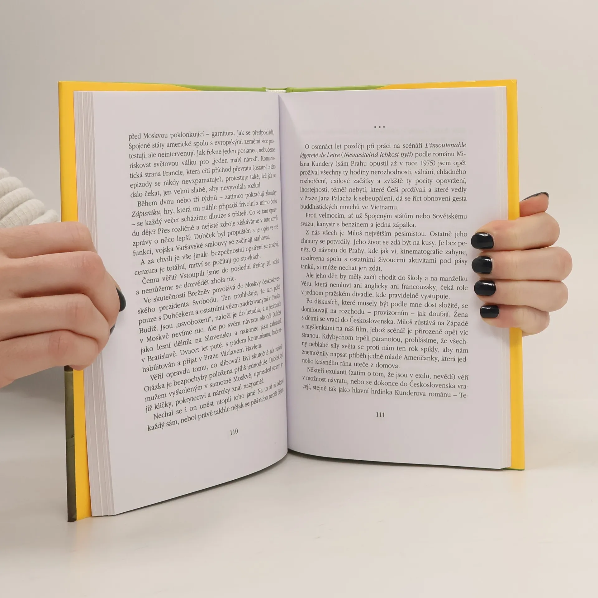 Vzpomínky francouzského filmového scenáristy Jeana-Clauda Carriera. Stejně jako konec let šedesátých jsou přesně určena i místa děje: New York,Paříž a Praha. Válka ve Vietnamu, hnutí hippies, pařížské povstání studentů v roce 1968 a konečně i srpnová invaze v Praze se tak dostávají do přímého kontextu a ozřejmují vzájemné ovlivňování zdánlivě nesouvisejících společenských událostí. Carriére, který je scenáristou filmové podoby Kunderovy Nesnesitelné lehkosti bytí, se zamýšlí nad smyslem revoluce a totalitním režimem, jak jej měl příležitost poznat díky Miloši Formanovi. Přesah do obecné roviny činí z knížky vzpomínek čtivou knihu úvah o dějinách takřka nedávných.