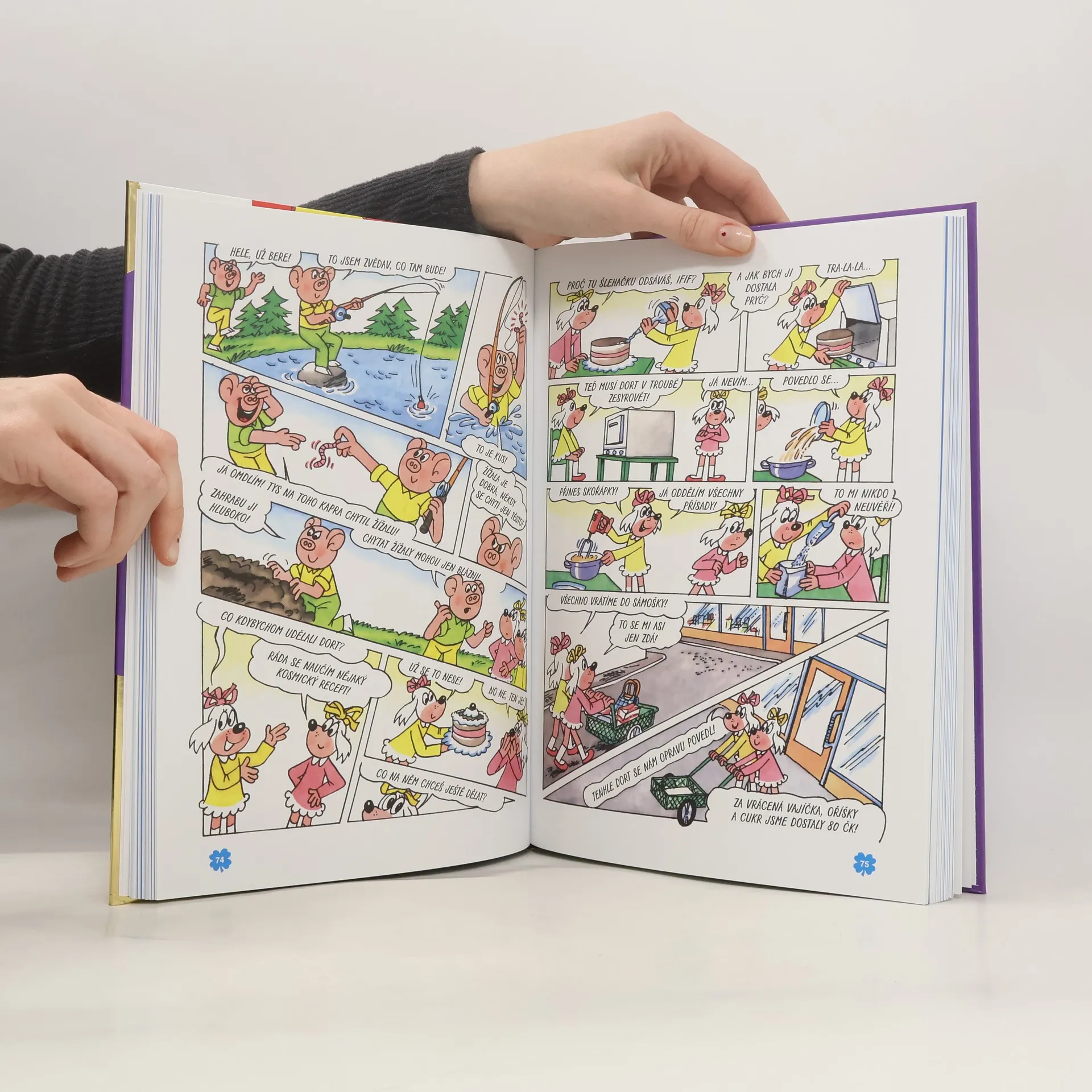 Připravili jsme desátý díl velkých souborných knih Čtyrlístku, který obsahuje příběhy z let 1992 a 1993 včetně proslulé Dvoustovky. Příběhy plynule navazují na dříve vydané. Obálka je tentokrát se zlatou ražbou, která bude na místě zde vyobrazené hnědé, tedy na 1. straně obálky a na hřbetu knihy. Vzorek zlaté ražby vám pošleme ještě zvlášť. Je velice atraktivní a přitáhne oko kupujícího.