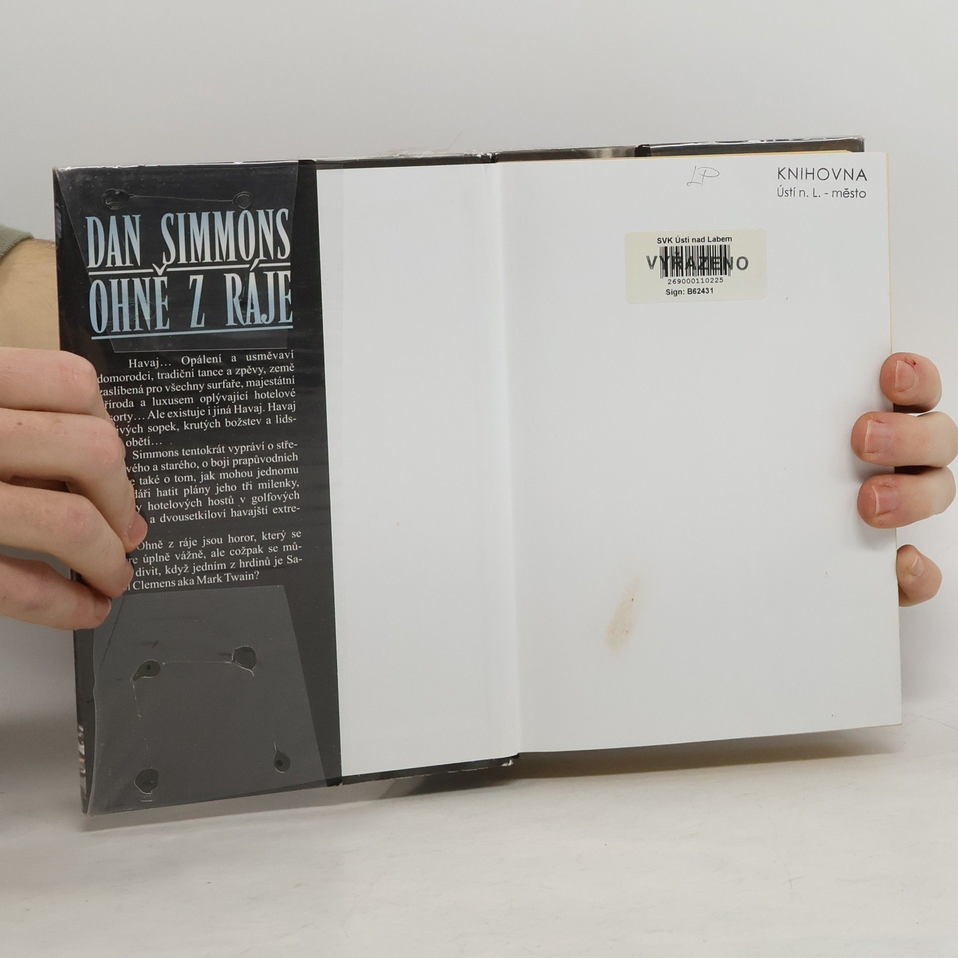 Havaj… Opálení a usměvaví domorodci, tradiční tance a zpěvy, země zaslíbená pro všechny surfaře, majestátní příroda a luxusem oplývající hotelové resorty… Ale existuje i jiná Havaj. Havaj děsivých sopek, krutých božstev a lidských obětí… Simmons tentokrát vypráví o střetu nového a starého, o boji prapůvodních sil, ale také o tom, jak mohou jednomu miliardáři hatit plány jeho tři milenky, mrtvoly hotelových hostů v golfových jamkách a dvousetkiloví havajští extremisté… Ohně z ráje jsou horor, který se nebere úplně vážně, ale cožpak se můžeme divit, když jedním z hrdinů je Samuel Clemens aka Mark Twain?