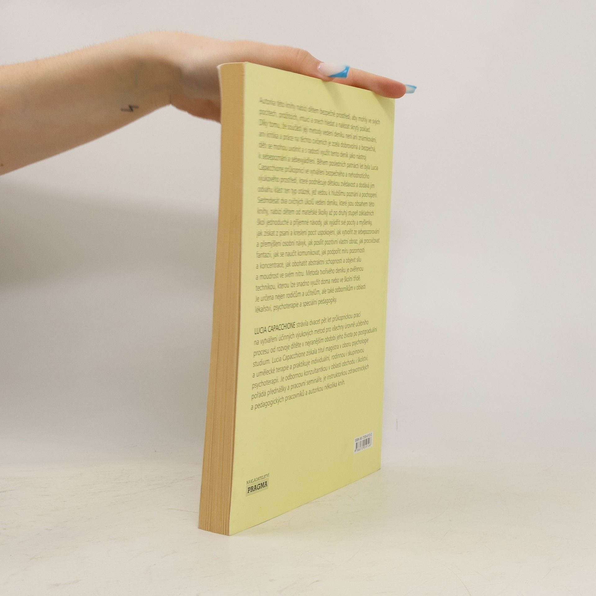 Společník pro rodiče, učitele a vychovatele Děti by měly od nejútlejšího věku rozvíjet svou kreativitu, učit se sdílet své nejniternější zážitky, myšlenky a třeba i pocity ze svých případných onemocnění. Lucia Capacchione ,která je pedagožkou a uměleckou terapeutkou, podává návod, jak mohou dospělí pomoci rozvoji svých dětí.Připravila řadu nápadů a cvičení, pomocí kterých děti rozvinou na základě psaní a kreslení své jazykové schopnosti a to do deníku, jehož obsah bude pro všechny ostatní osoby bez rozdílu věku naprosto tajný.Tím je zaručena intimita sdělení dítěte a jeho naprosto bezstarostné používání deníku.