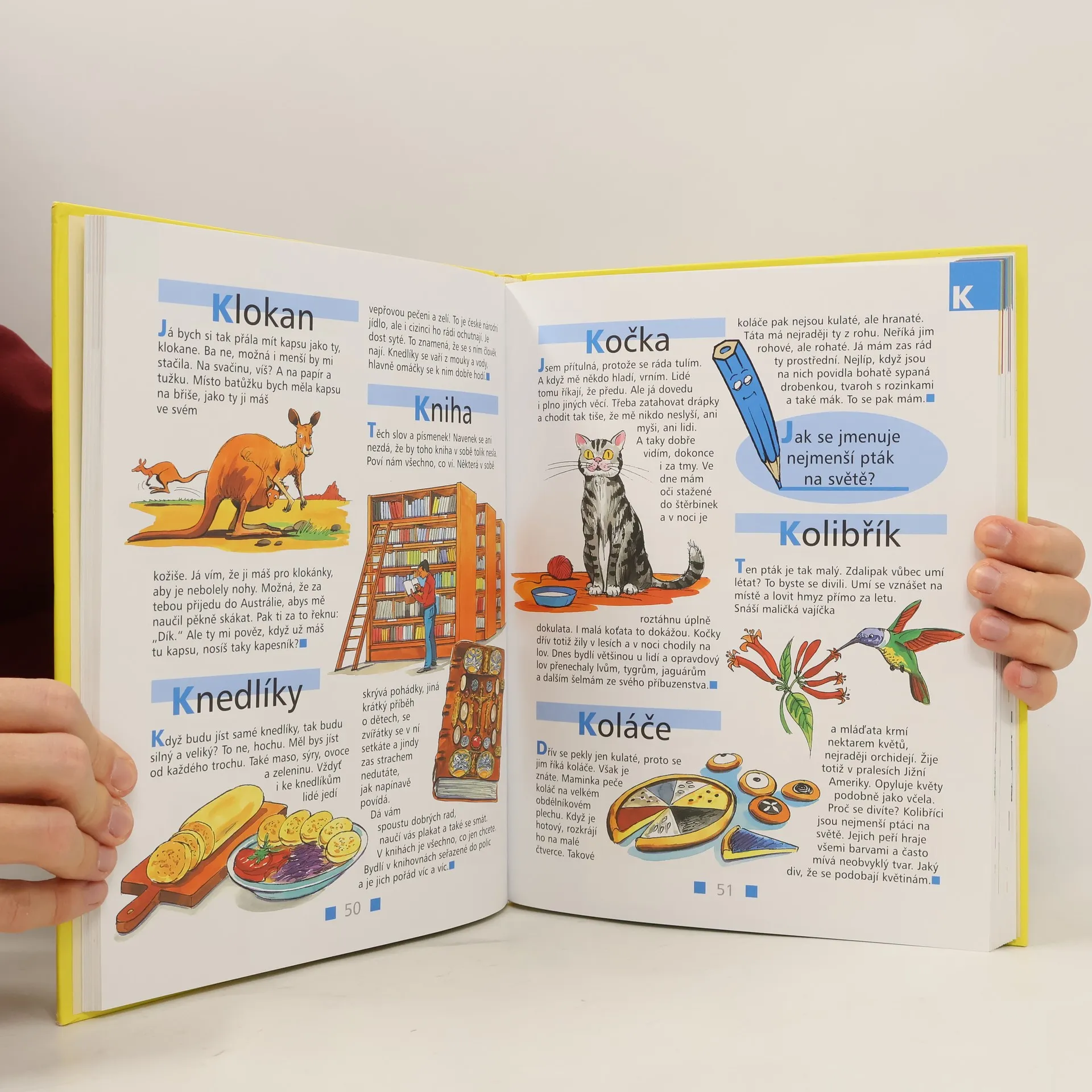 Podtitul: [česká, moderní, veselá] všeobecná encyklopedie pro děti od pěti let. Hravou a veselou formou vysvětlené některé pojmy současného světa; předškolní děti tak snadno pochopí význam věcí a úkazů, které je obklopují. Hesla jsou abecedně řazena, u každého hesla je výstižný obrázek pro snazší pochopení. Na každé dvoustraně je pro čtenáře připravena otázka nebo úkol, aby si tak děti procvičily získané vědomosti.